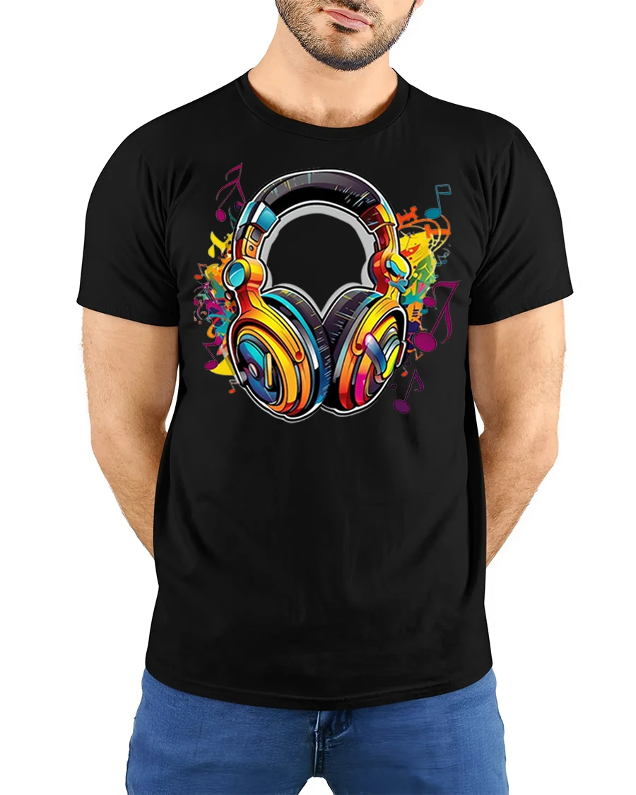 Colorful Music Headphones Art Tee Vibrant Sound Graphic T Shirt