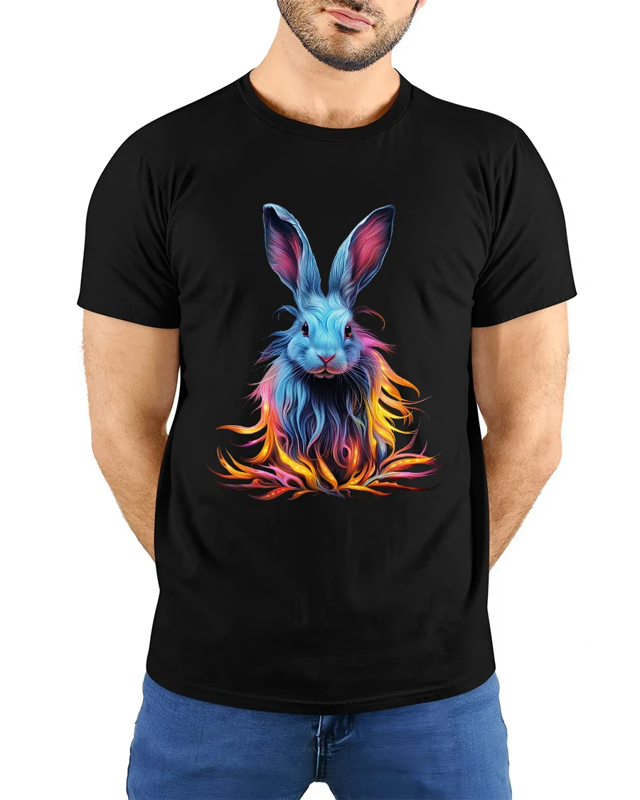 Brighten your style with this Colorful Neon Bunny T Shirt Vibrant Fantasy Rabbit Tee that turns a simple outfit into a bold artistic statement. The stunning design features a beautifully detailed bunny illustrated in glowing neon shades of blue, pink, and fiery orange tones that flow like luminous flames. This imaginative artwork blends fantasy and modern digital art into one captivating graphic that instantly draws attention.