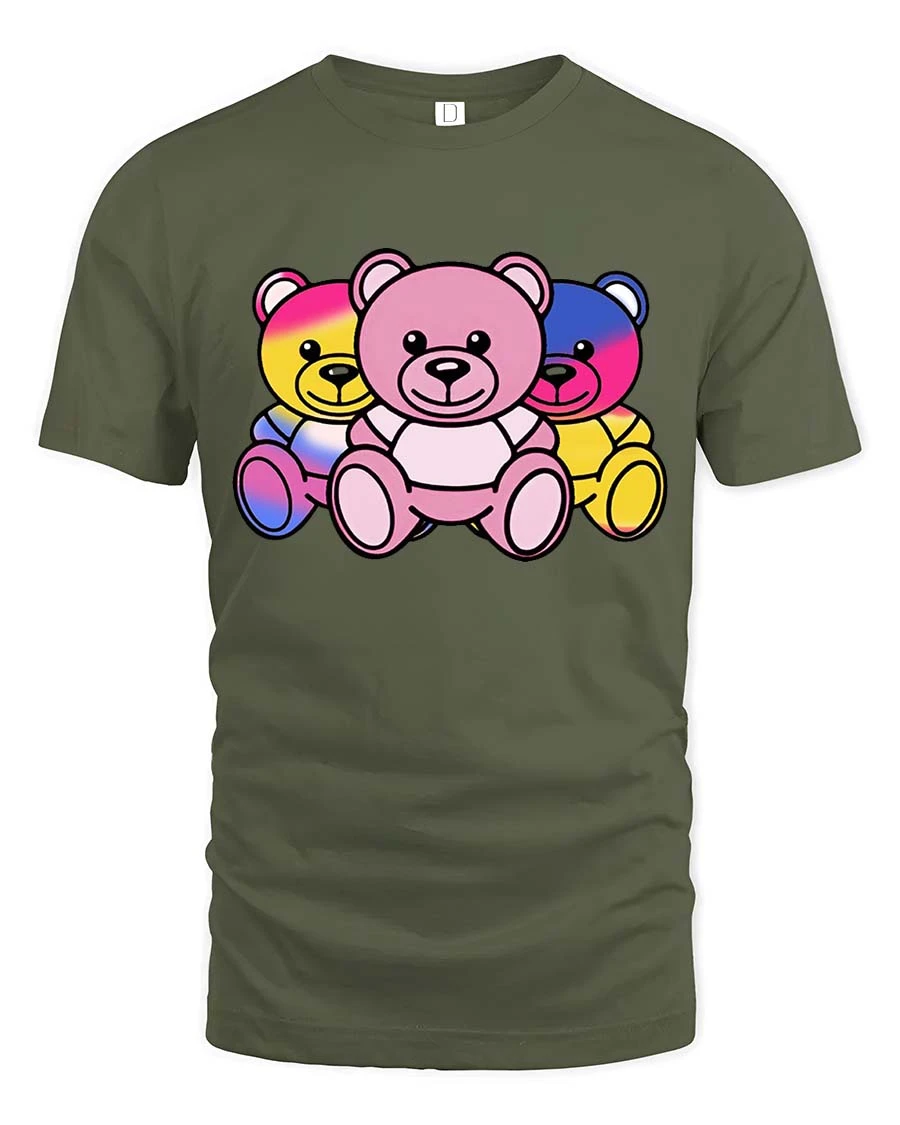 Featuring three adorable teddy bears with vibrant neon colors, this tshirt creates a cheerful and modern aesthetic that attracts attention instantly.