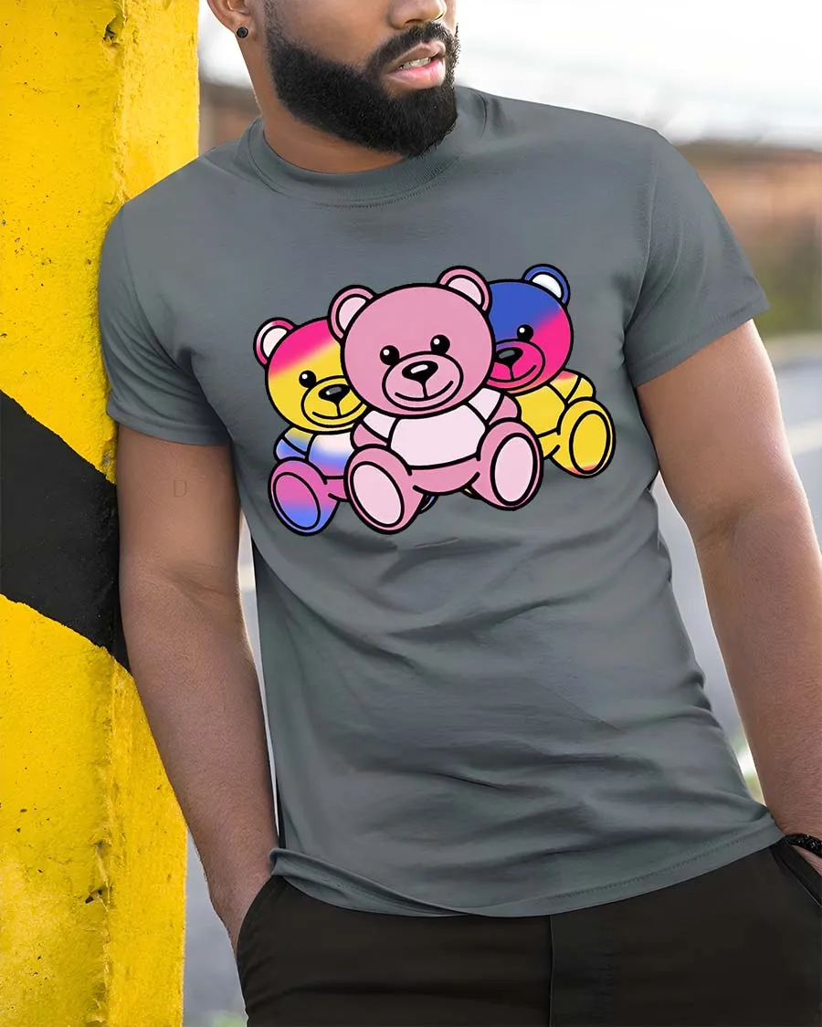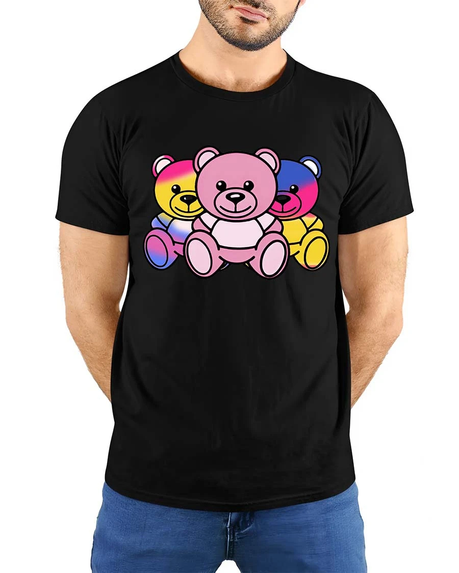 Colorful Neon Teddy Bear Trio Cute Graphic T-Shirt Design brings a playful and eye catching look that stands out in any casual wardrobe.