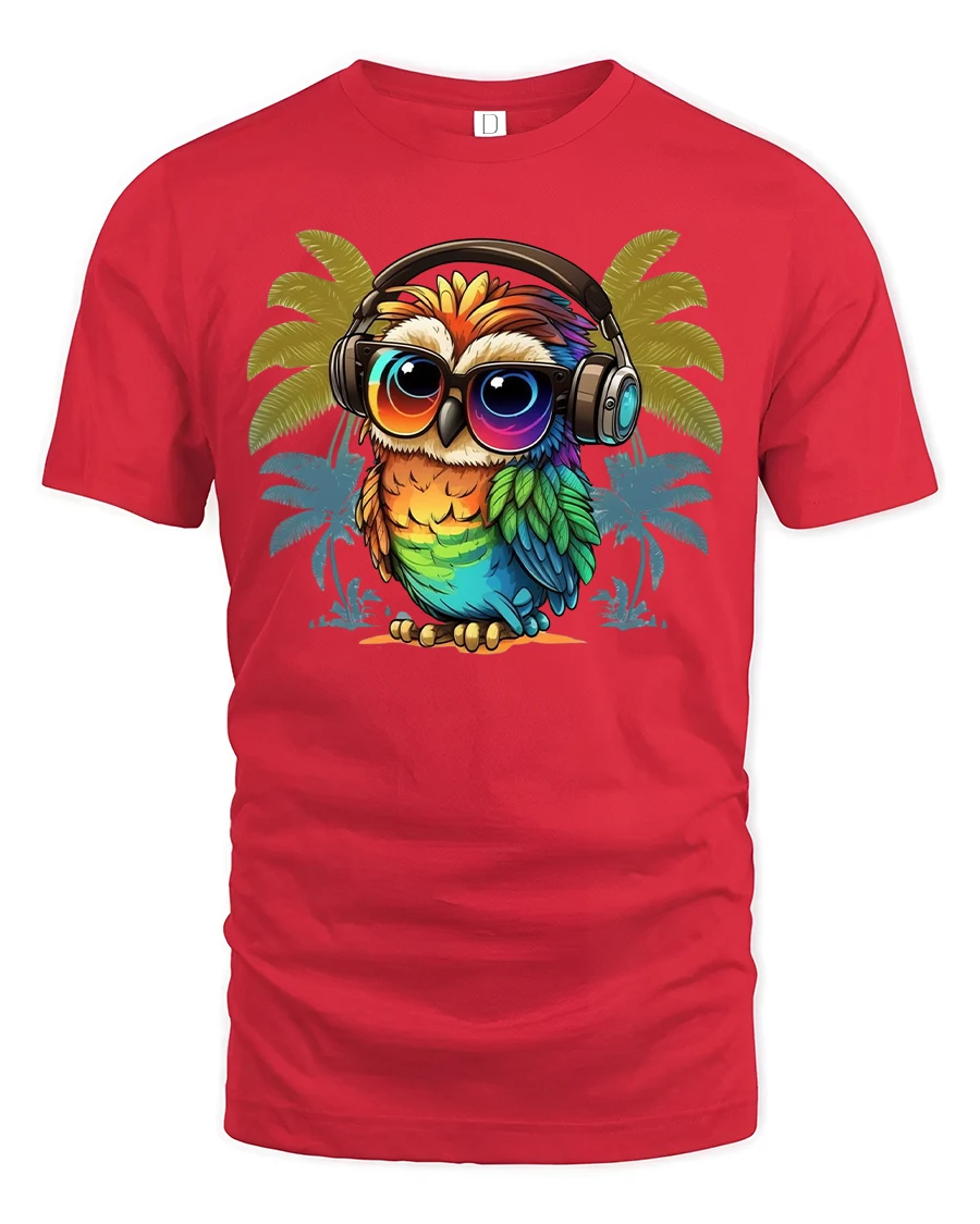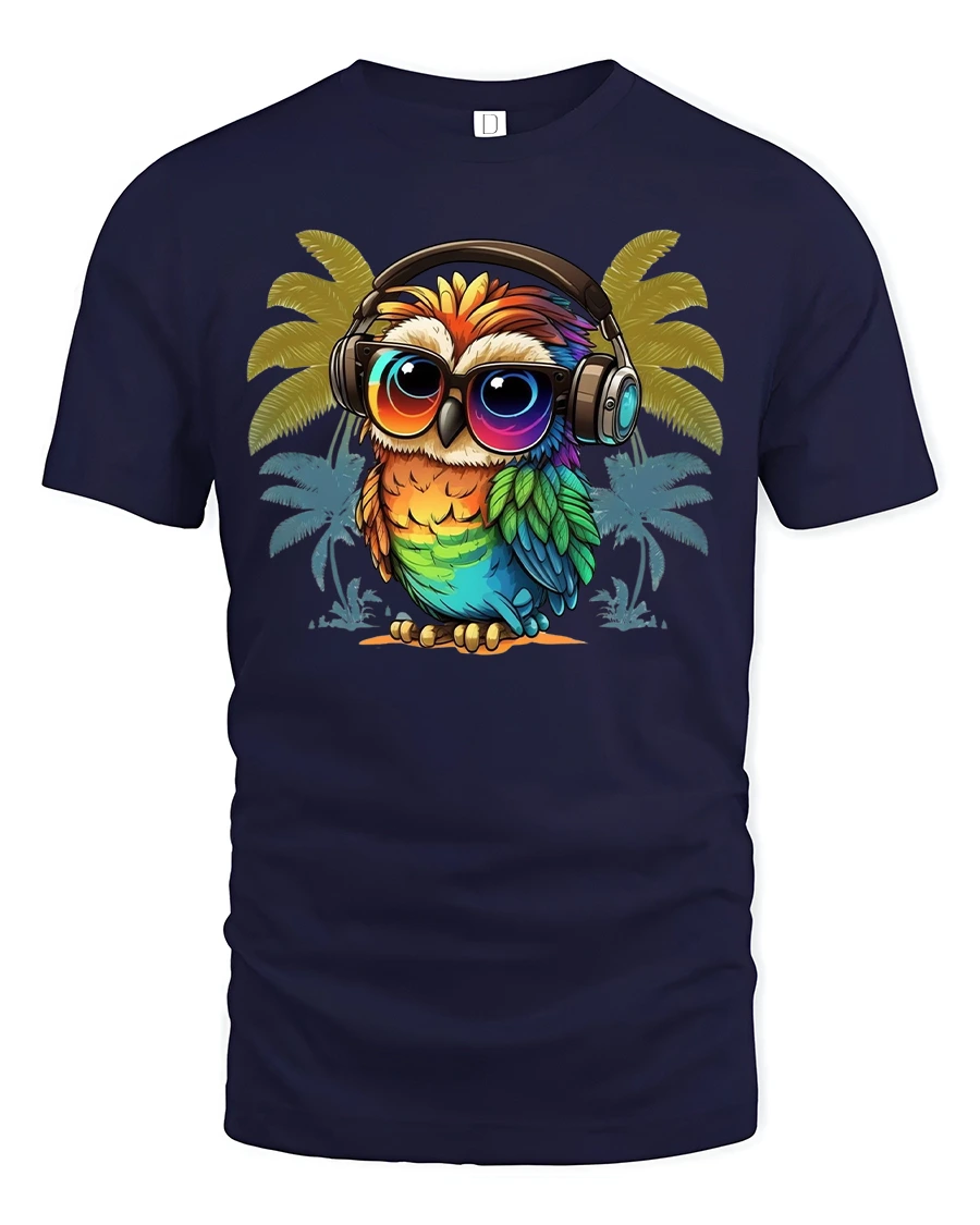 Colorful Owl Headphones Tee Retro Tropical Vibe TShirt brings together bold color, fun personality, and a relaxed tropical style that stands out in any wardrobe. Designed for owl lovers, music fans, and anyone who enjoys playful statement apparel, this tee features a vibrant owl wearing oversized headphones against a cool palm-tree backdrop.