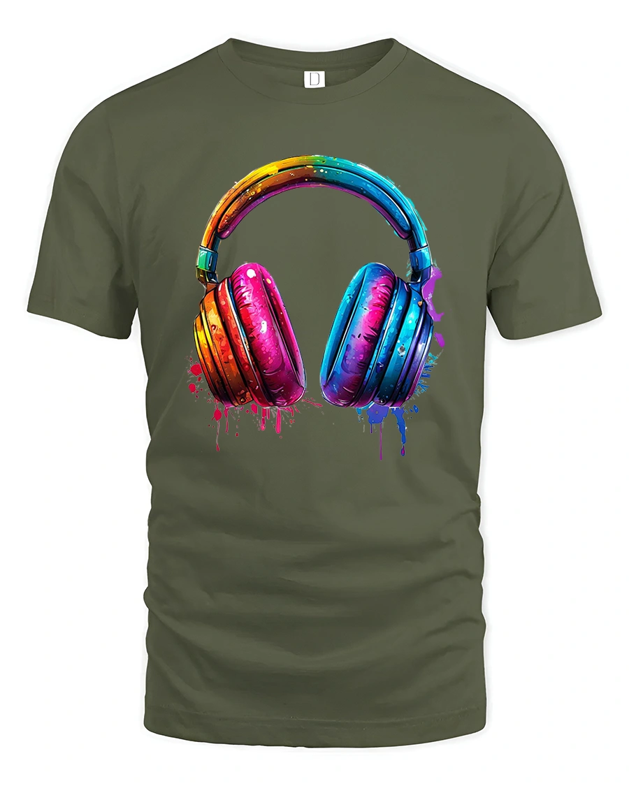 The Colorful Paint Splash Headphones Music Lover Artistic Graphic Tee captures the energy emotion and creativity of music in a bold visual style.