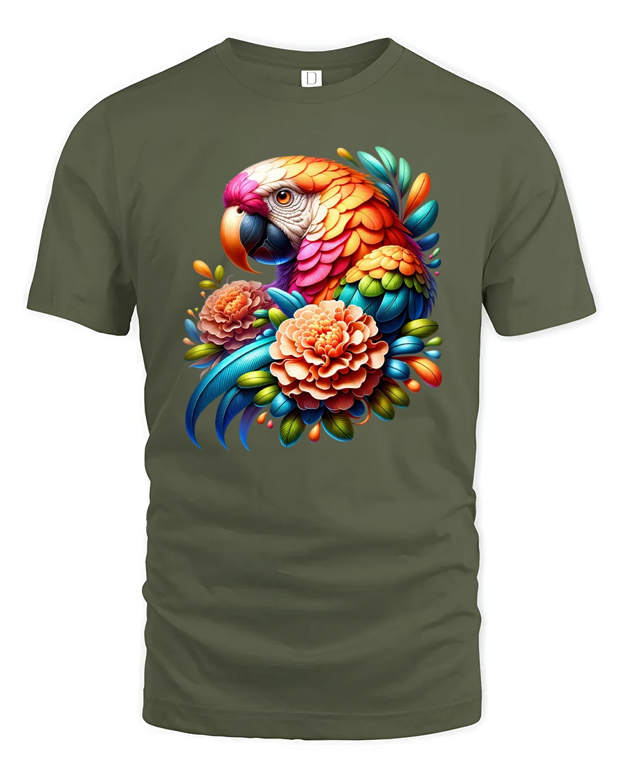 Bring a splash of color and nature’s charm wherever you go with this unique parrot tee.