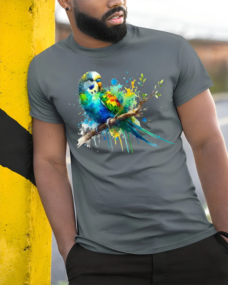 Colorful Parrot Splash Art Graphic T Shirt is perfect for anyone who loves birds nature and expressive artwork.