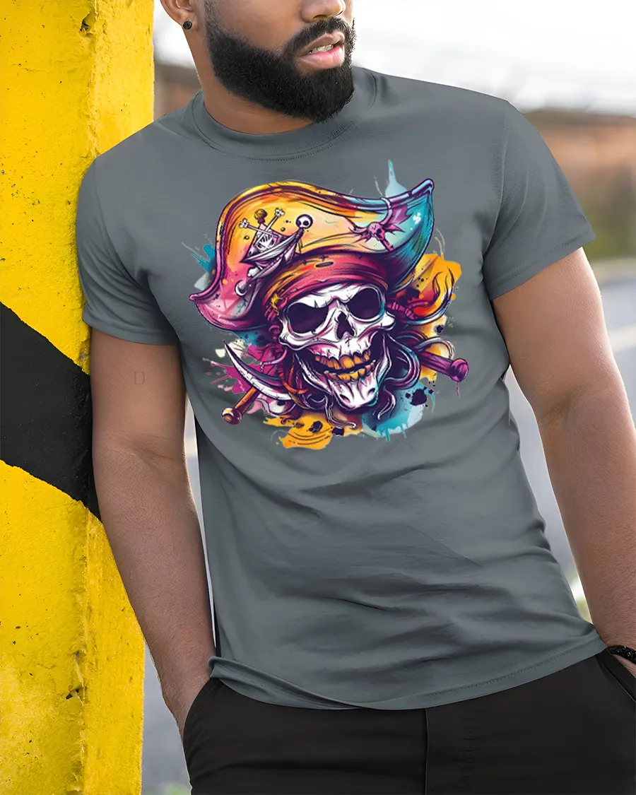 The Colorful Pirate Skull Graphic T Shirt with Bold Street Art Style brings fearless attitude and artistic flair into one unforgettable design.