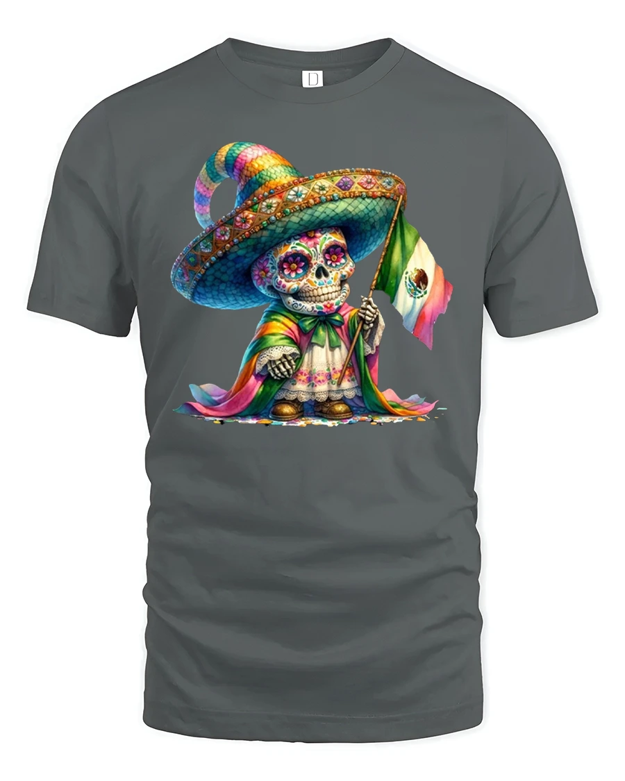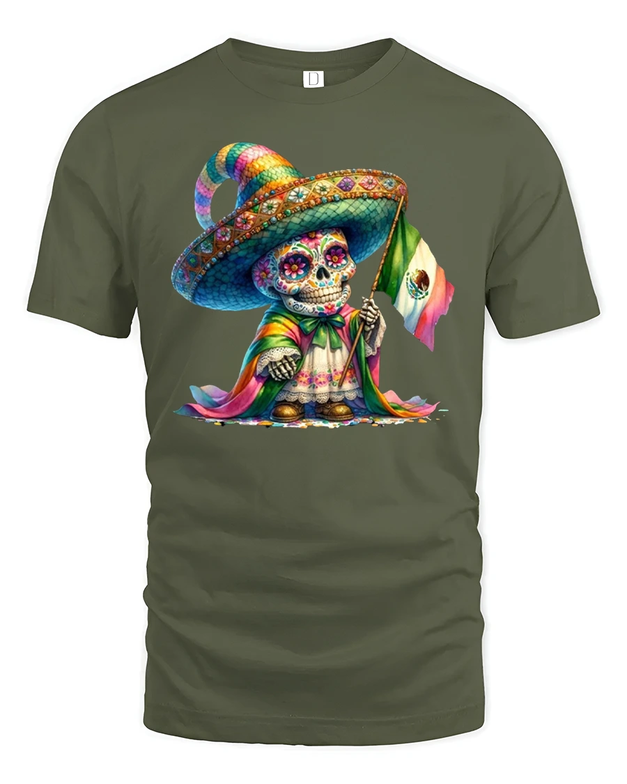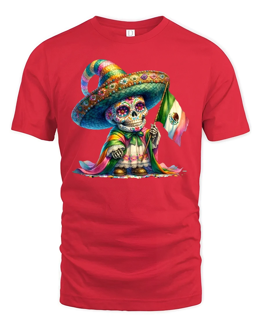 Colorful Sugar Skull Mexican Flag Day of Dead T-Shirt celebrates the rich culture and artistry of Mexico in bold, vibrant style.