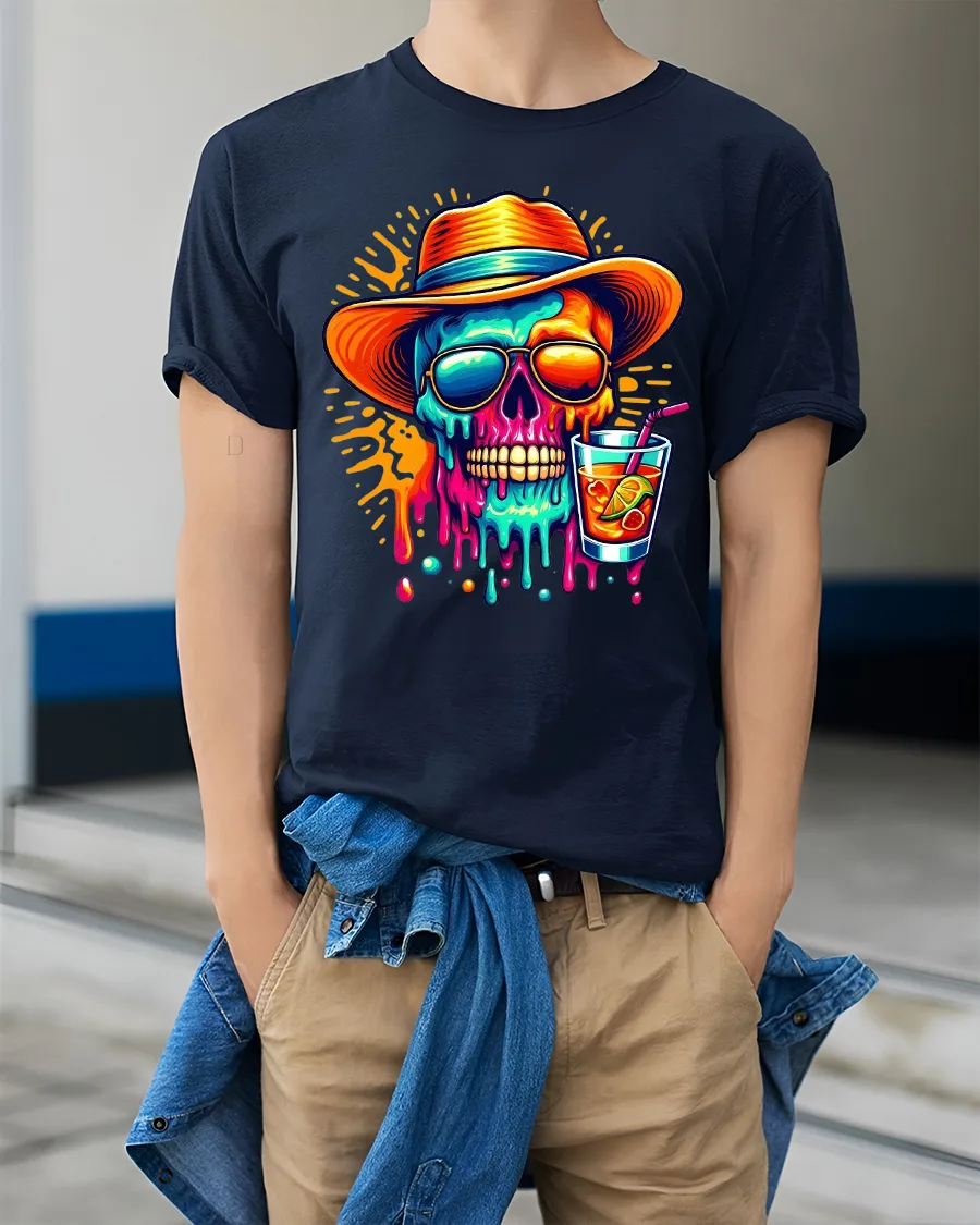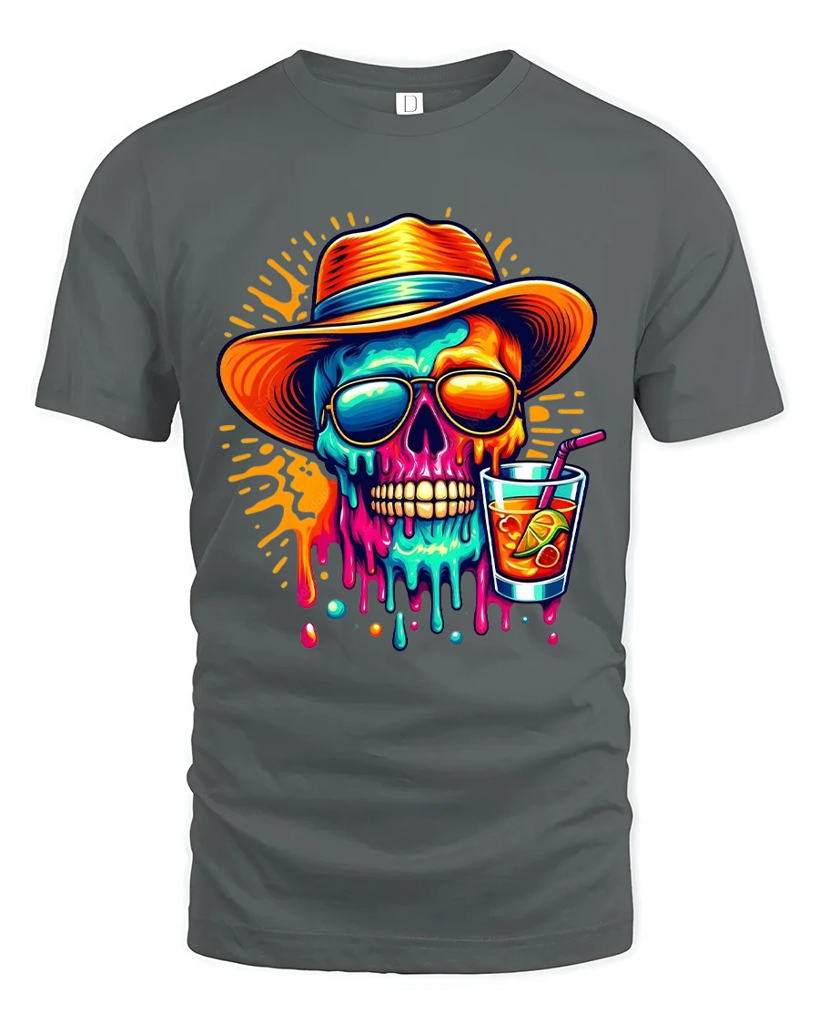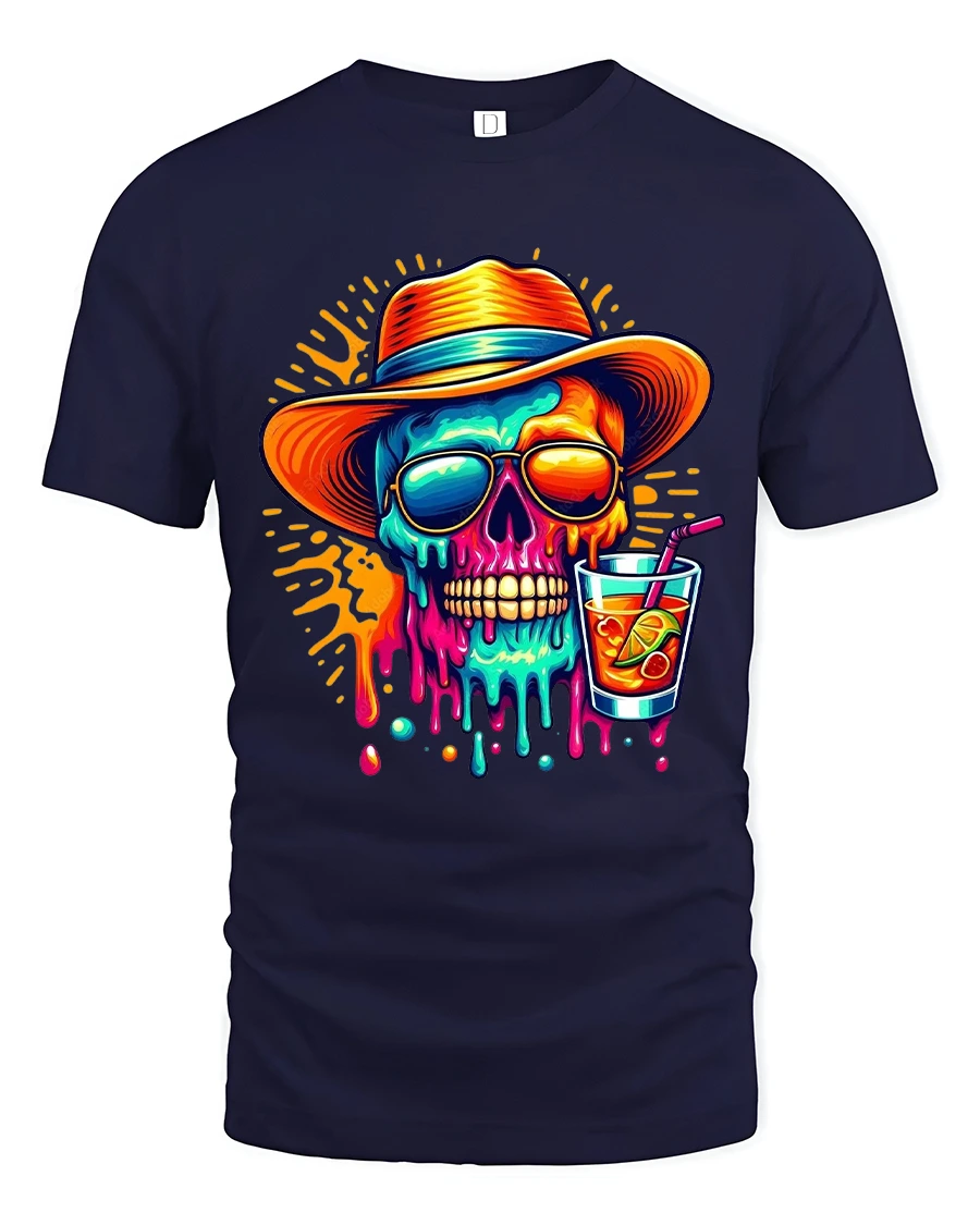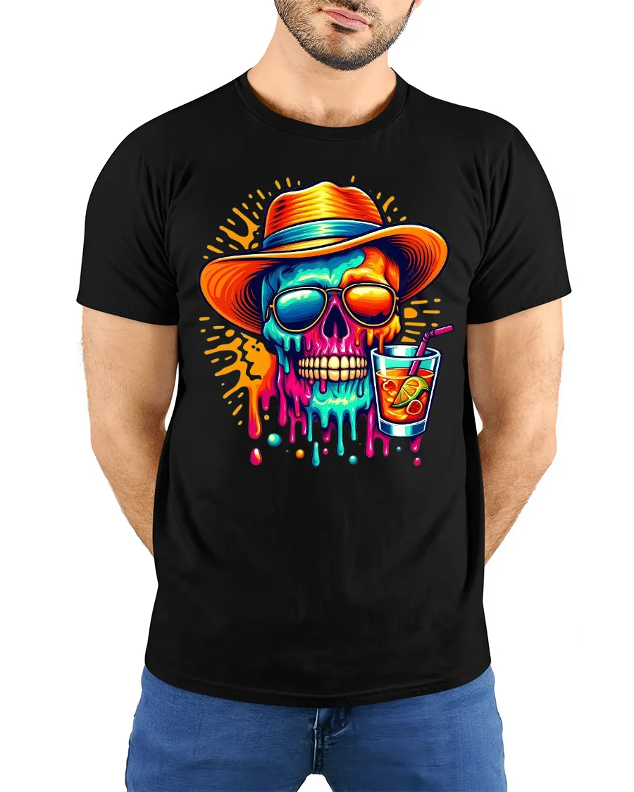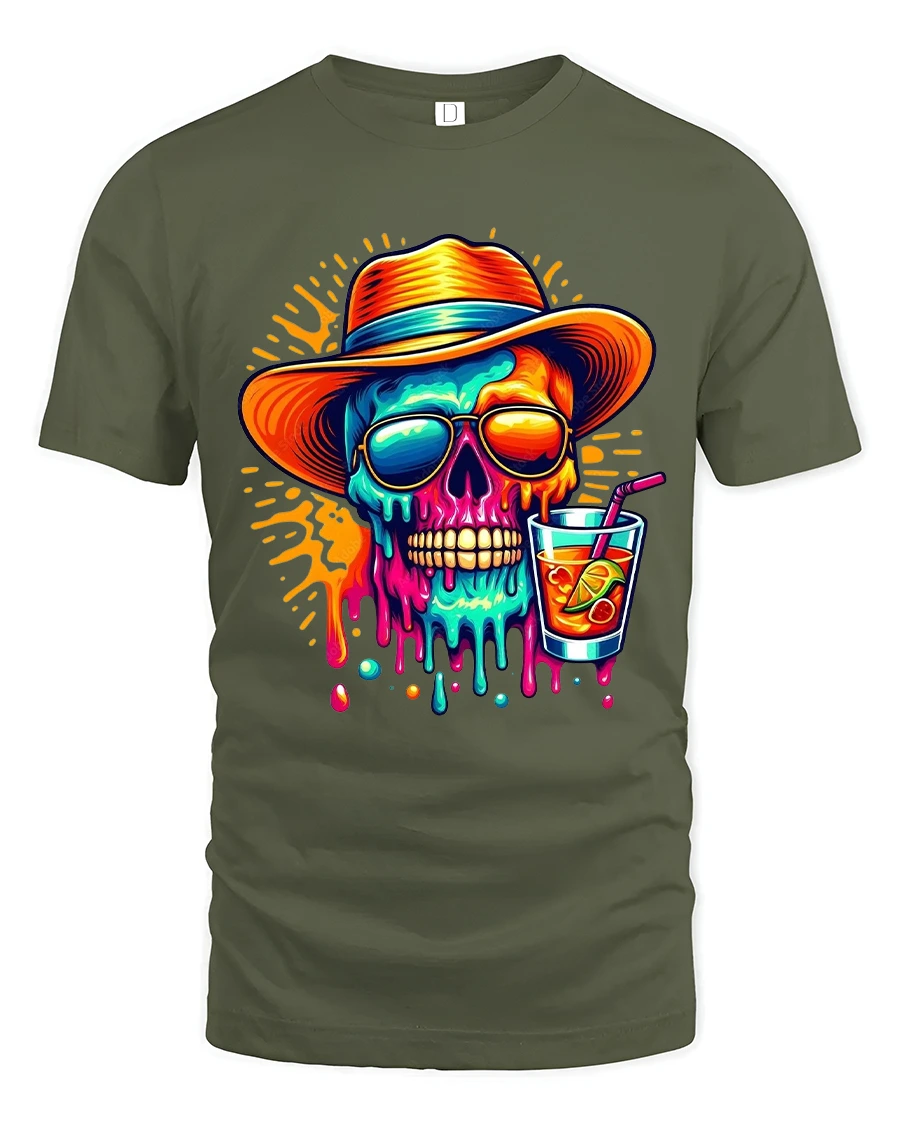 Colorful Summer Skull Cocktail Graphic T Shirt With Chill Vibes is perfect for those who enjoy bold art and relaxed vibes.