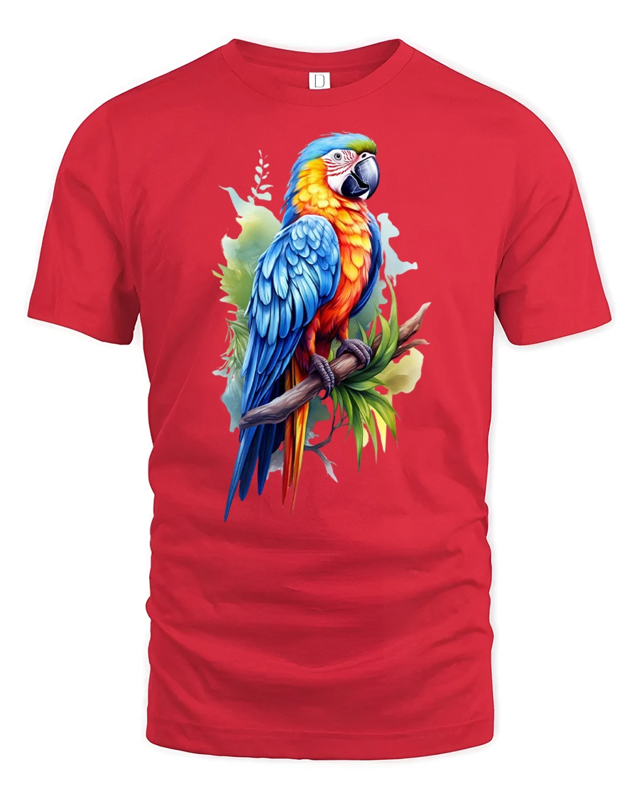 The Colorful Tropical Parrot Illustration Art Graphic Tee delivers a bold and lively design inspired by the beauty of exotic wildlife.