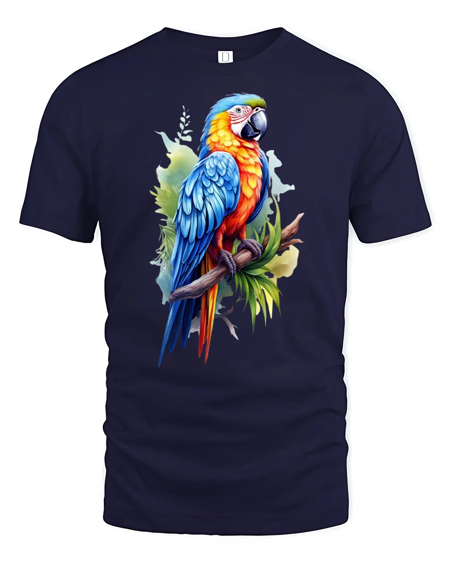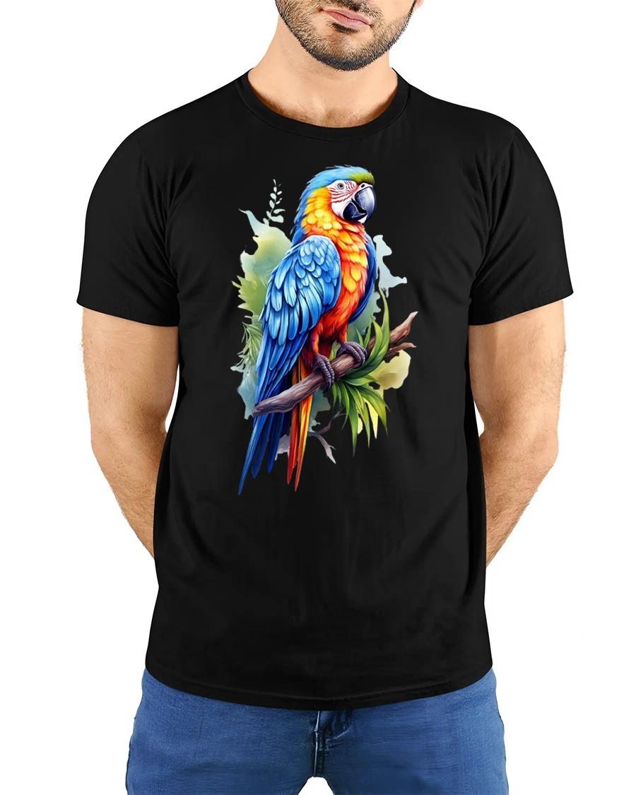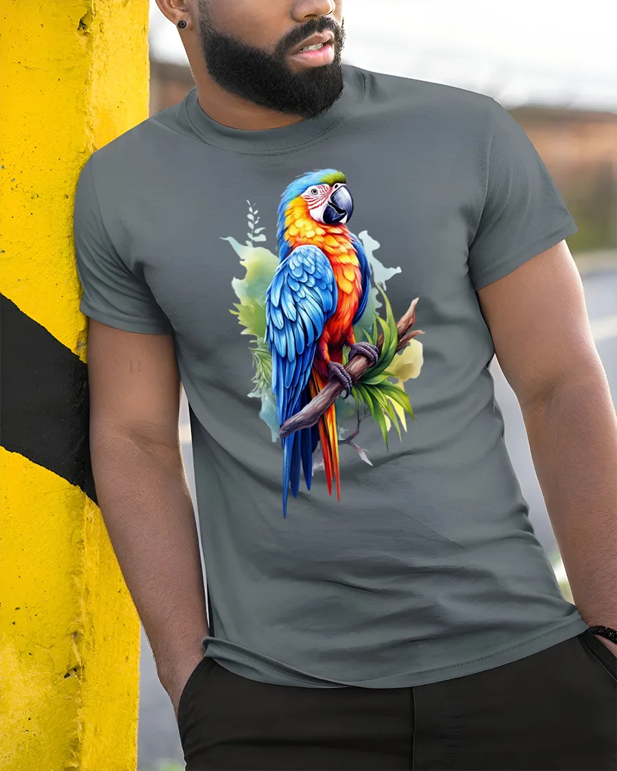 This parrot themed graphic tshirt is ideal for those who love nature, animals, and expressive design.