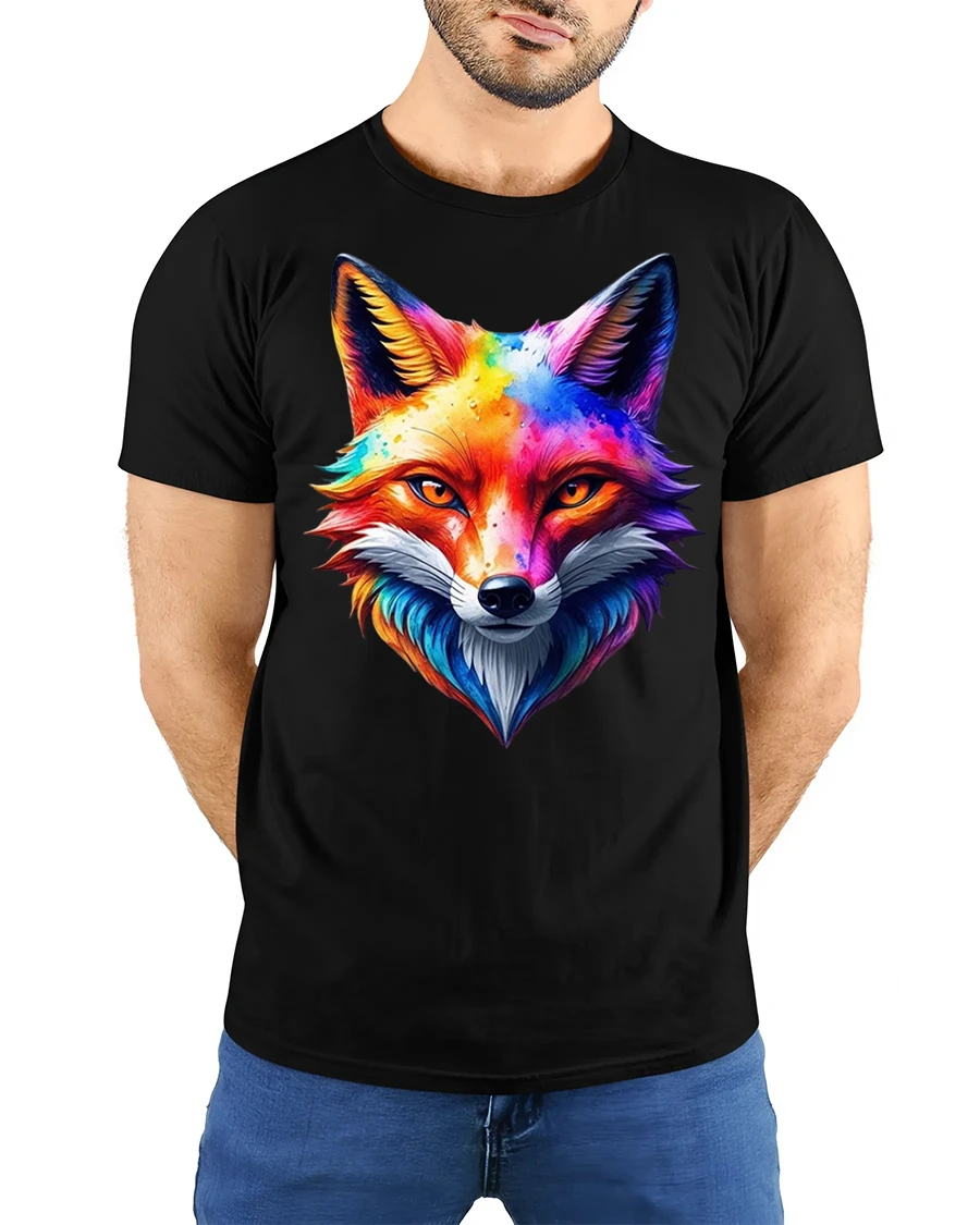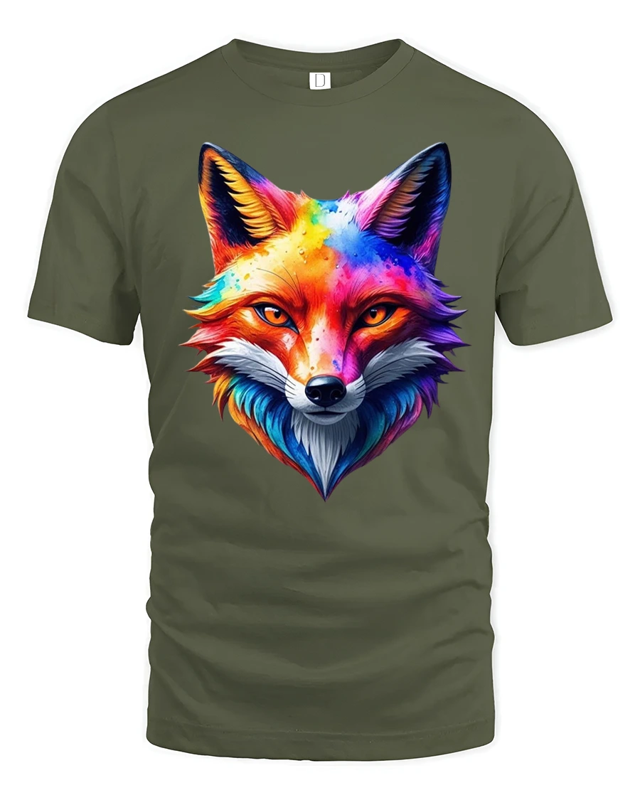 The Colorful Watercolor Fox Face Artistic Wildlife Graphic Tee Shirt adds personality and artistic flair to everyday style.