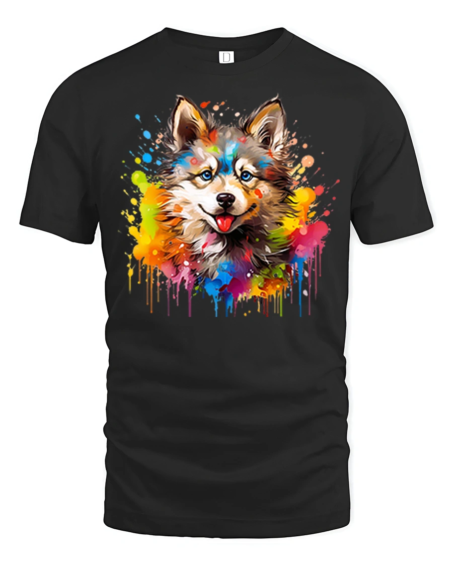 Colorful Wolf Art Tshirt With Paint Splash Wild Spirit Style adds creativity passion and wild energy to your wardrobe.