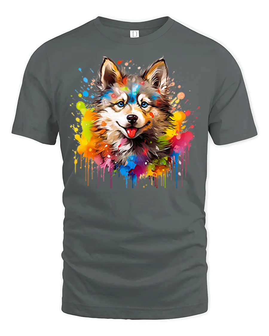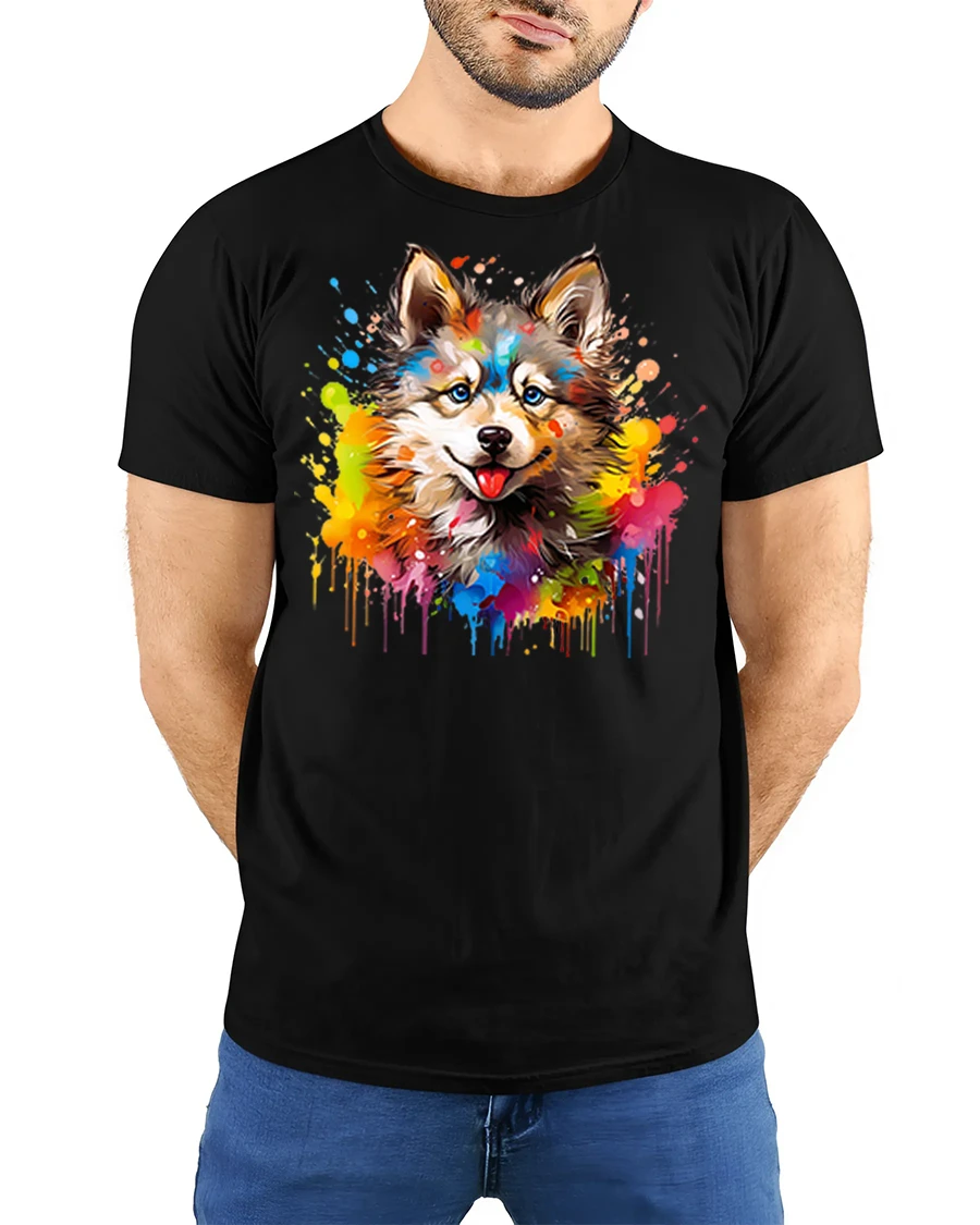 Home Animals & Pets Lover Colorful Wolf Art Tshirt With Paint Splash Wild Spirit Style
