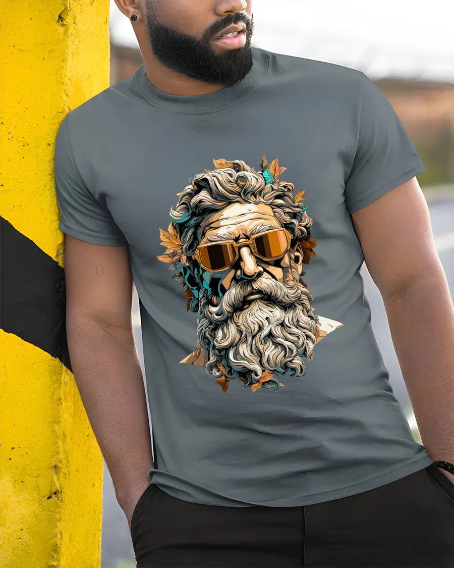 Channel timeless power and modern style with the Cool Bearded Greek God Portrait Graphic T Shirt. This bold artwork features a detailed bearded figure inspired by classic mythology, updated with sleek sunglasses and contemporary flair. The fusion of ancient statue aesthetics and urban attitude makes this greek god t shirt a striking statement piece that blends history, art, and confidence in one unforgettable design.