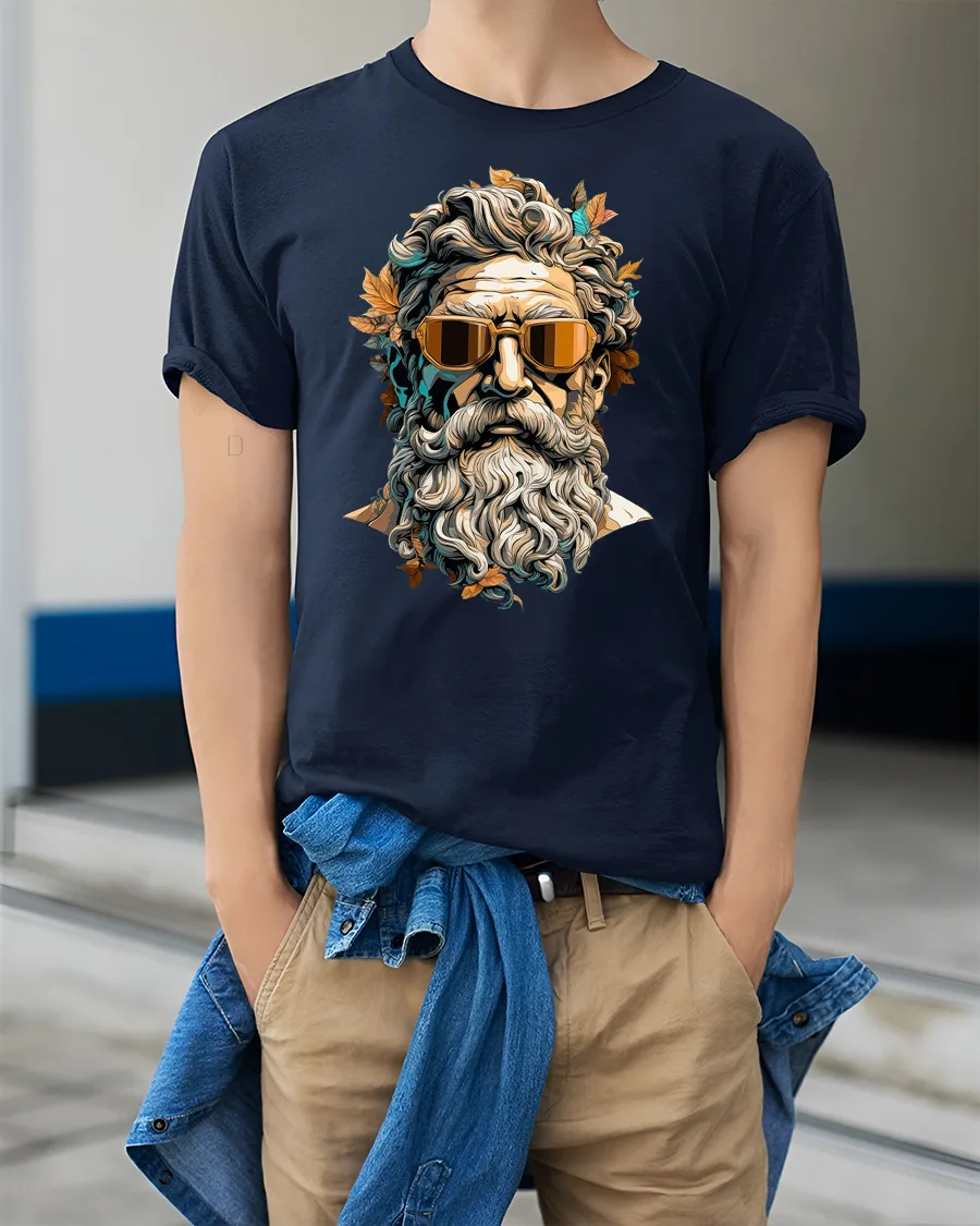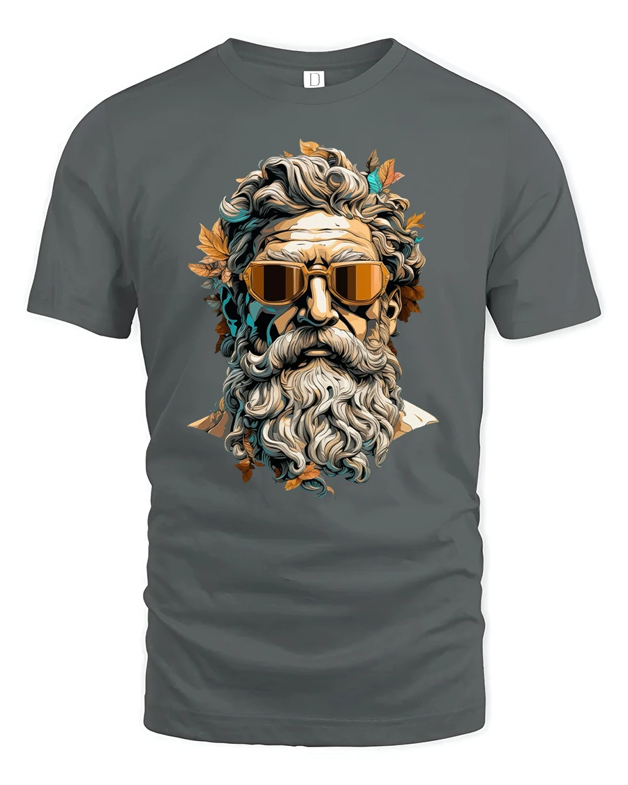 Cool Bearded Zeus Tee Retro Mythology Style Graphic Tshirt brings together ancient legend and modern street style in one bold design. Featuring a detailed Greek-inspired statue head wearing sleek sunglasses, this tee blends classic mythology with a cool contemporary twist. The intricate lines, flowing beard and autumn leaf accents make the artwork stand out beautifully, giving the shirt an artistic and stylish feel.