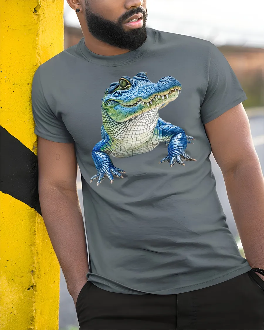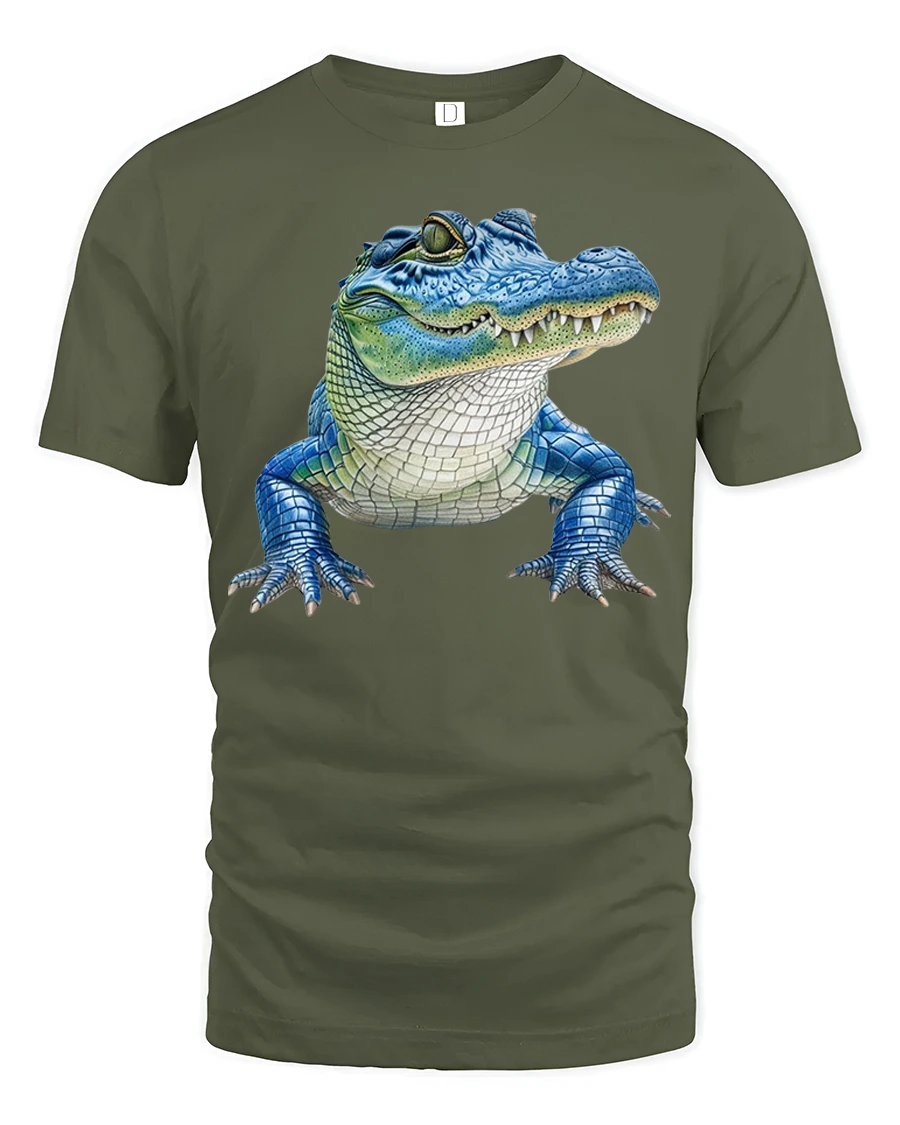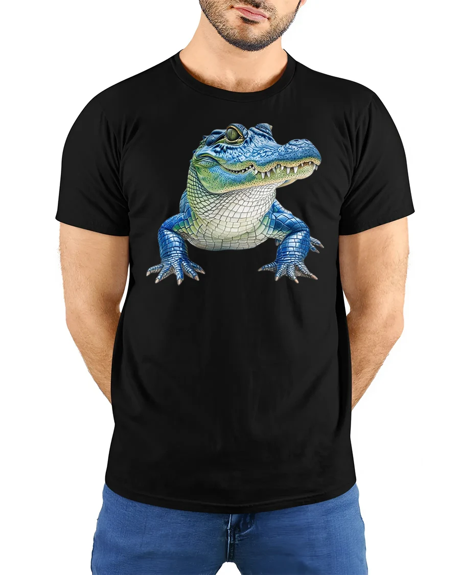 Perfect for animal lovers, reptile fans, or anyone who enjoys colorful and creative graphics, this blue alligator tee adds energy and character to any look. The design offers a fun way to highlight your love of unique art while keeping your style fresh and playful.