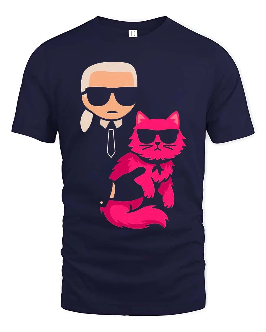 Featuring a sleek character with a fashionable cat wearing sunglasses, this design gives off a cool and confident vibe.
