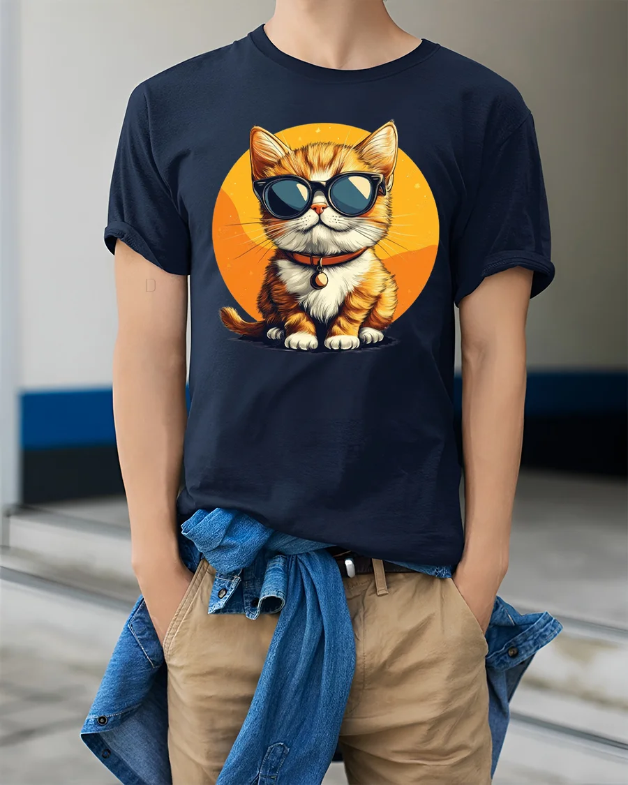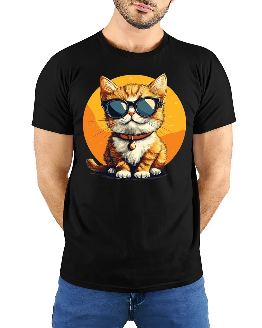 The sunglasses cat graphic represents chill energy playful spirit and modern style.