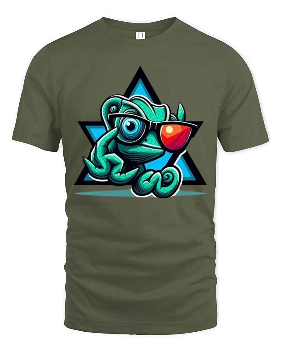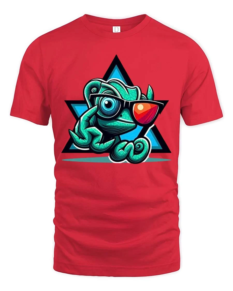 The Cool Chameleon Sunglasses T-Shirt features a stylish cartoon chameleon rocking trendy sunglasses and a confident pose. This playful reptile graphic brings humor and personality to your everyday wardrobe while showing off a fun, modern cartoon style. The bold colors and cool character design make this t-shirt perfect for reptile lovers, animal fans, and anyone who enjoys unique and expressive graphic tees.