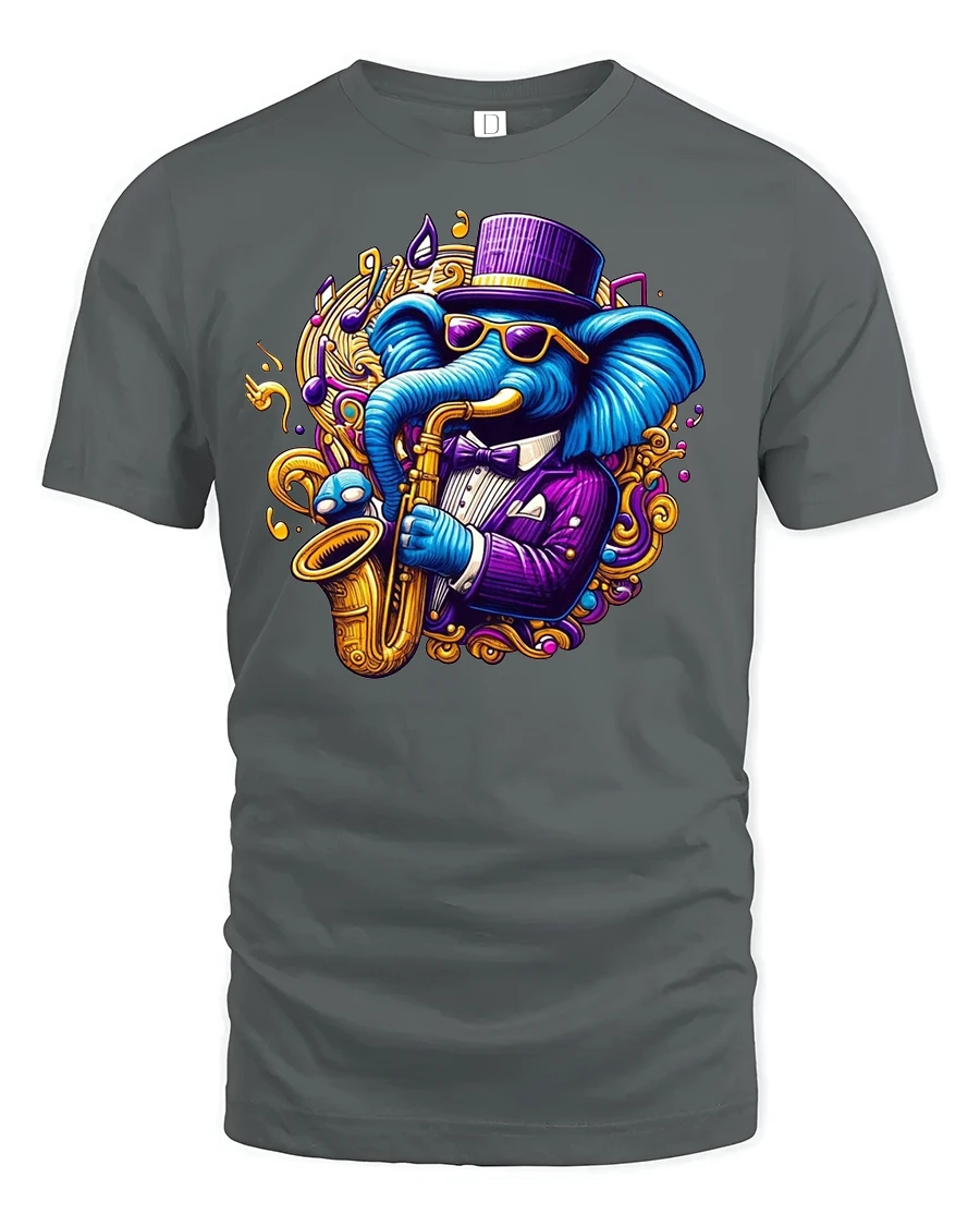 This saxophone graphic music tee also makes a fantastic gift for musicians, jazz enthusiasts, or anyone who enjoys quirky and colorful designs. It’s more than just a shirt—it’s a celebration of music, fun, and style. Step out in rhythm and show off your love for jazz with this unforgettable elephant design.