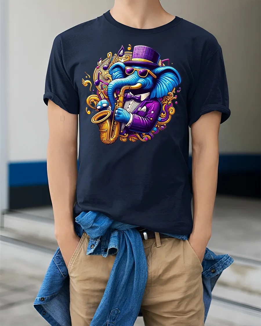 Made from soft, breathable fabric, this jazz elephant t-shirt combines comfort with creativity. The high-quality print captures every detail of the saxophone, musical notes, and funky elephant character, giving it a unique look that pairs well with jeans, shorts, or streetwear. Whether you’re heading to a live jazz performance, hanging out with friends, or just love collecting novelty graphic tees, this shirt adds personality to any outfit.