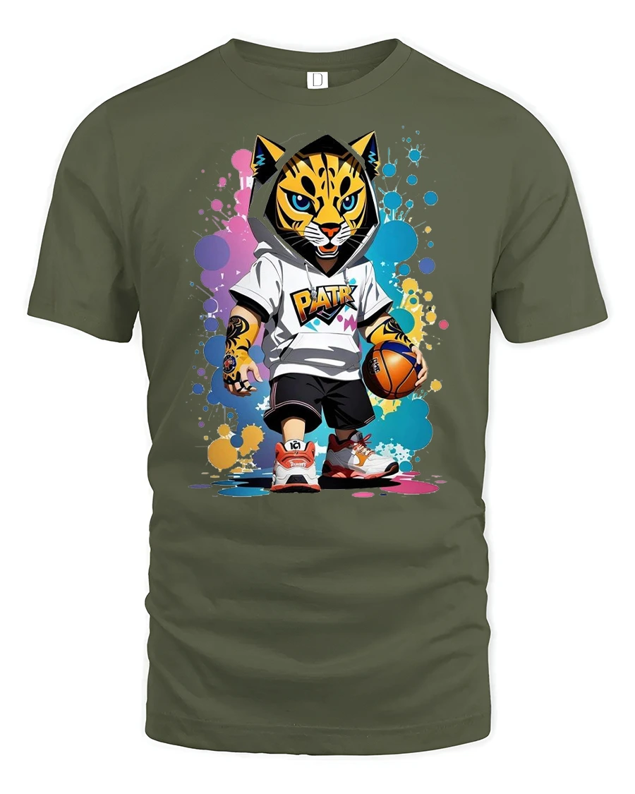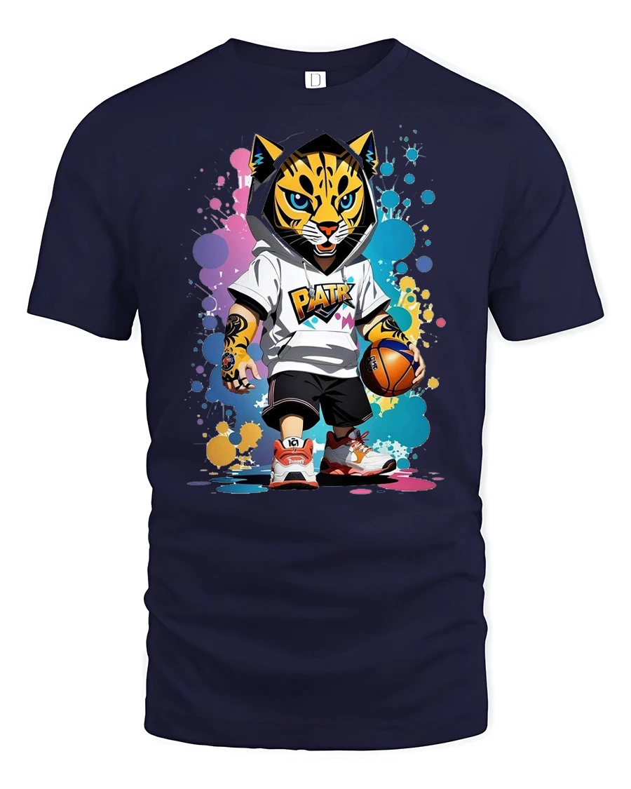 Featuring a fierce leopard dressed in a hoodie and sneakers holding a basketball, this shirt captures the spirit of confidence, energy, and creativity.