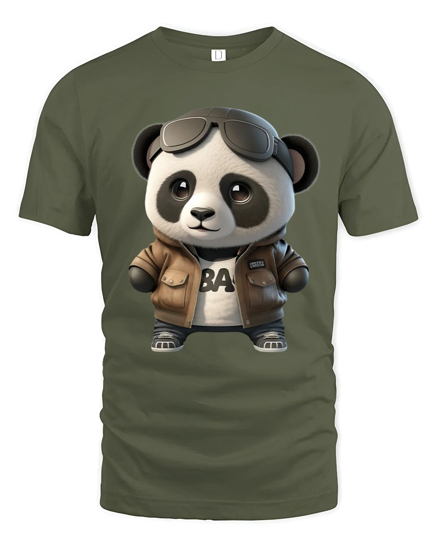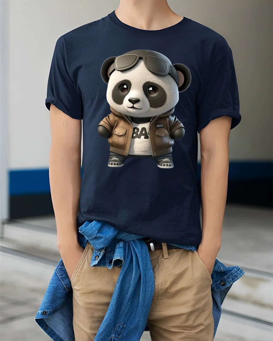 Cool Panda Aviator Graphic Tee combines charm and confidence with an adorable panda dressed in a stylish jacket and aviator goggles.
