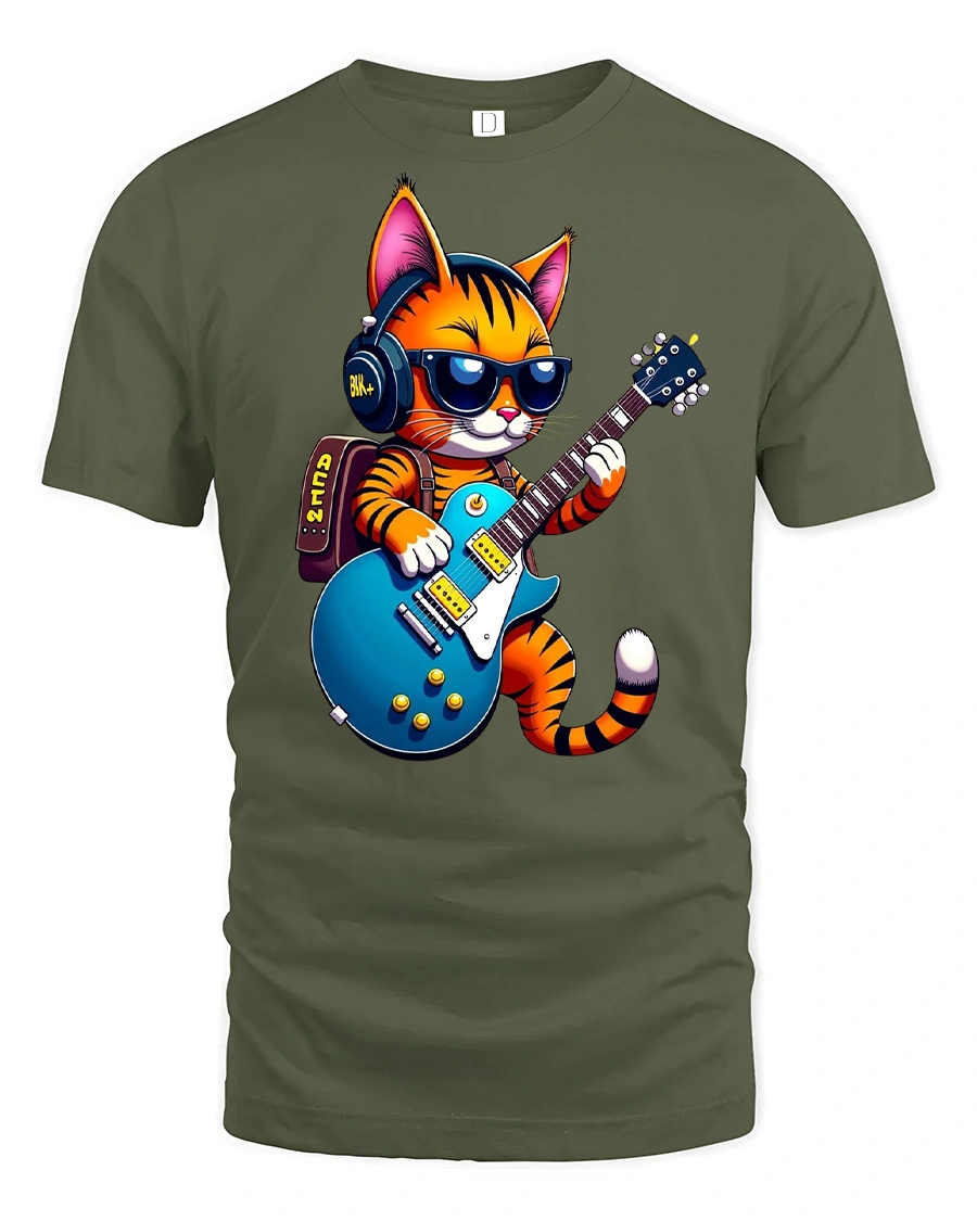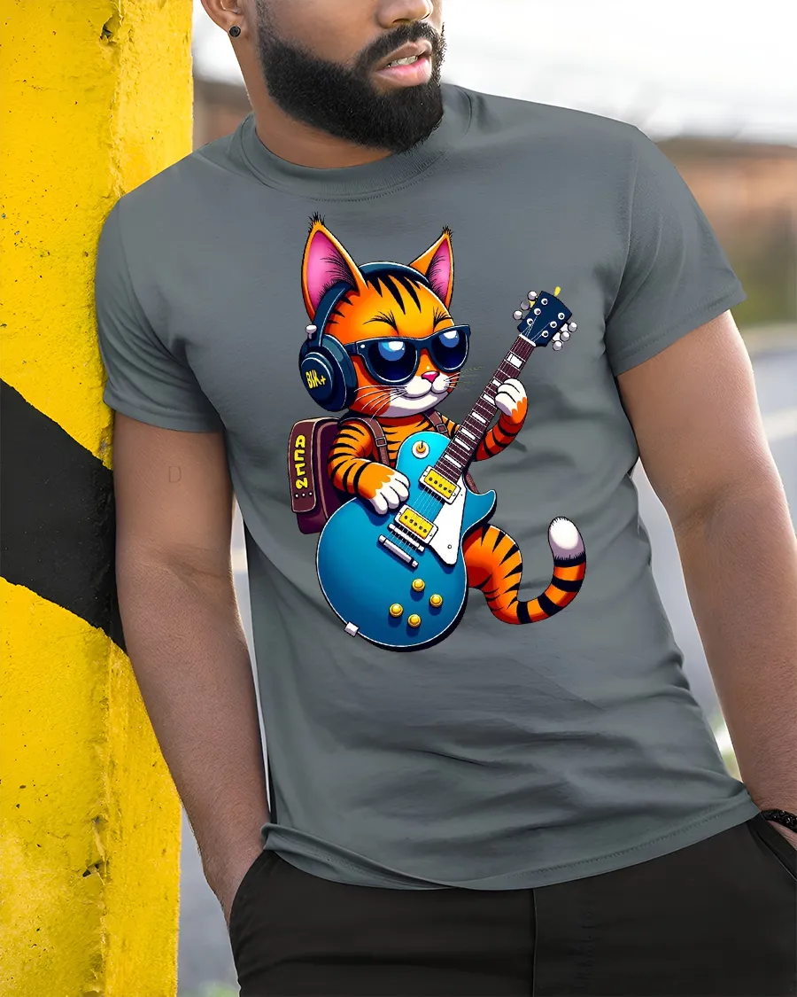 Cool Rock Cat Guitar Tee with Funky Music Graphic is the perfect mix of style, humor, and music-inspired fashion. Featuring a playful cartoon cat wearing shades and headphones while rocking out on an electric guitar, this tee is made for music lovers who enjoy bold and fun designs.