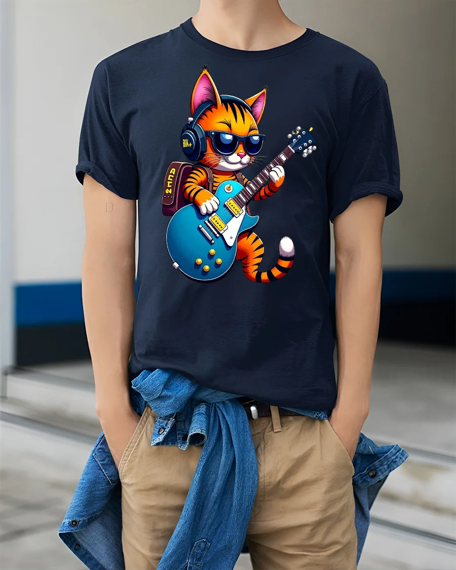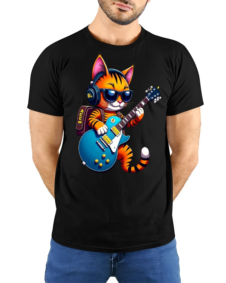 Crafted from high-quality cotton blend fabric, this cat guitar t-shirt ensures lasting comfort and durability. The vibrant print pops with energy, making it ideal for casual wear, concerts, festivals, or simply expressing your love for music and cats in everyday style. Its lightweight feel and relaxed fit make it a versatile addition to any wardrobe.