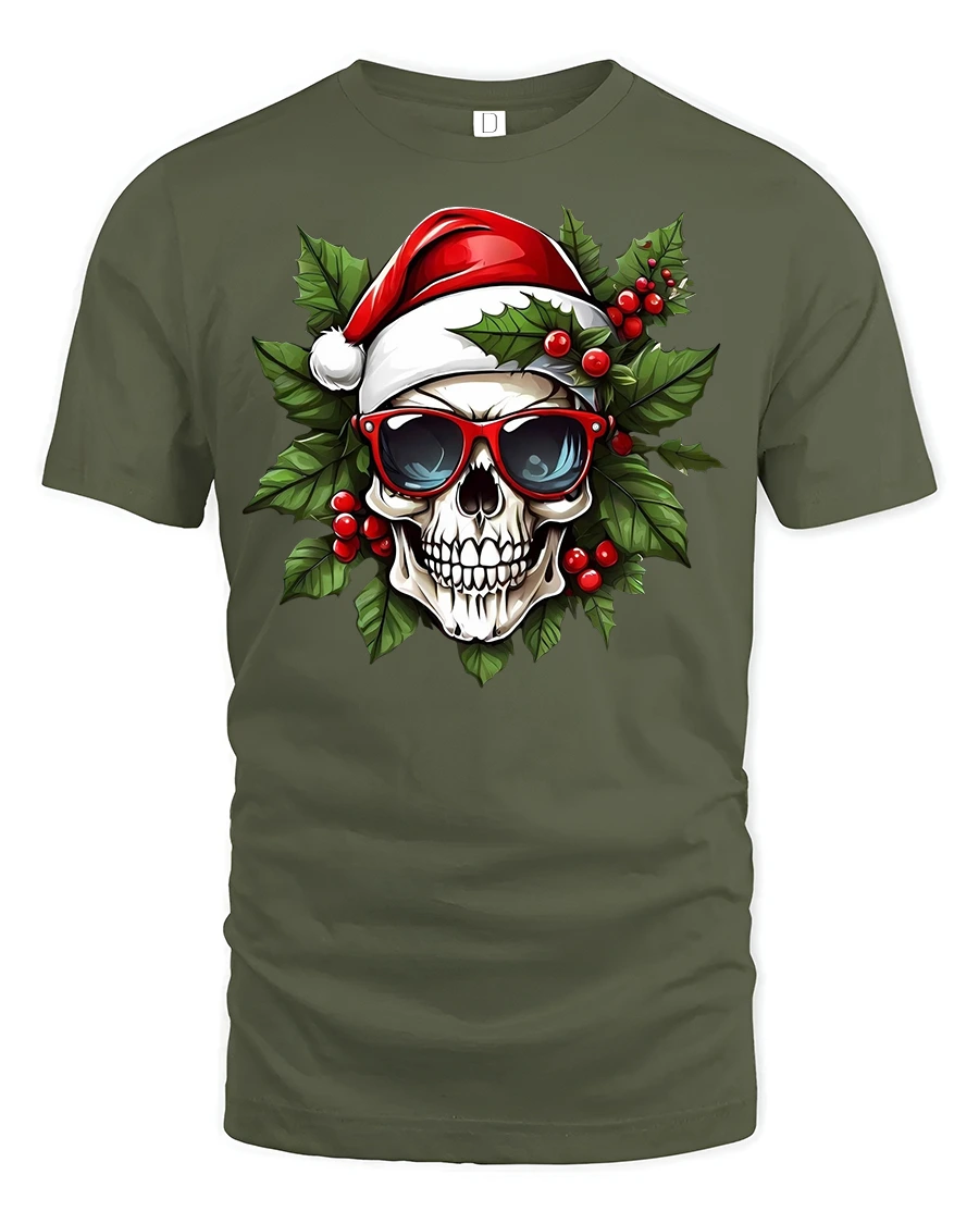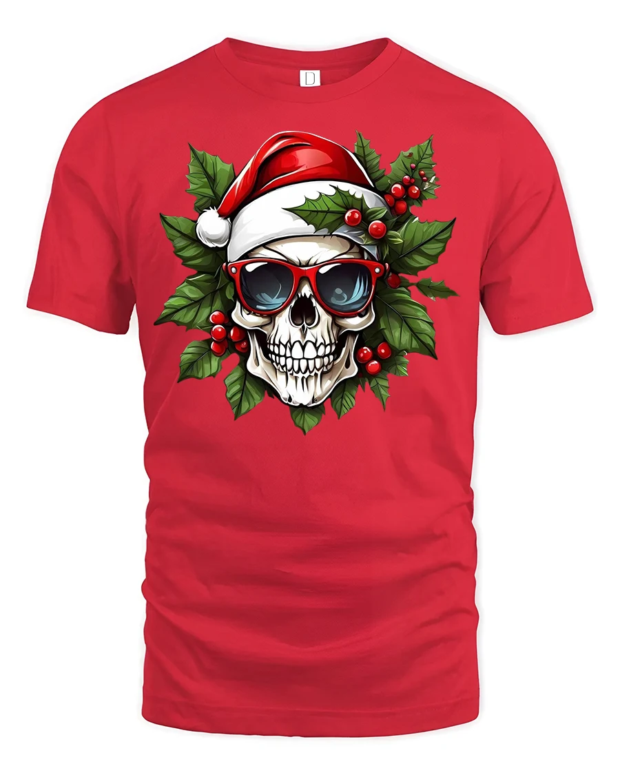 Made from soft and comfortable material, this t-shirt is perfect for Christmas parties, casual outings, festive concerts, or anytime you want to stand out with a unique seasonal look. The crisp, detailed print highlights the holly leaves, glossy shades, and expressive skull design, making it a great conversation starter throughout the holiday season. It’s an ideal gift for skull lovers, rock fans, or anyone who enjoys fun and unconventional Christmas apparel.