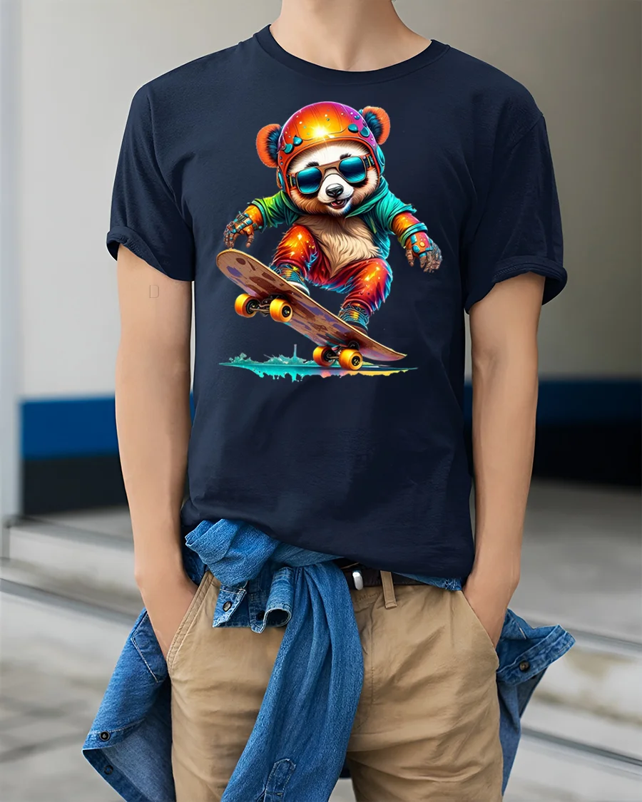 The Cool Skateboarding Panda Graphic Streetwear T-Shirt also makes an awesome gift for skateboarders, animal lovers, or anyone who appreciates unique streetwear fashion. Step up your casual look with this bold and colorful tee that’s sure to grab attention wherever you go.