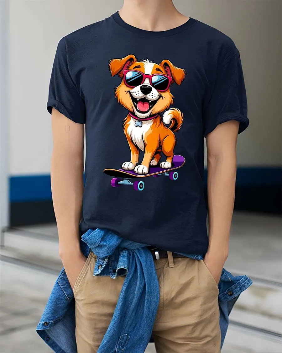 This skater dog tee is ideal for pet lovers and fans of street-style fashion.