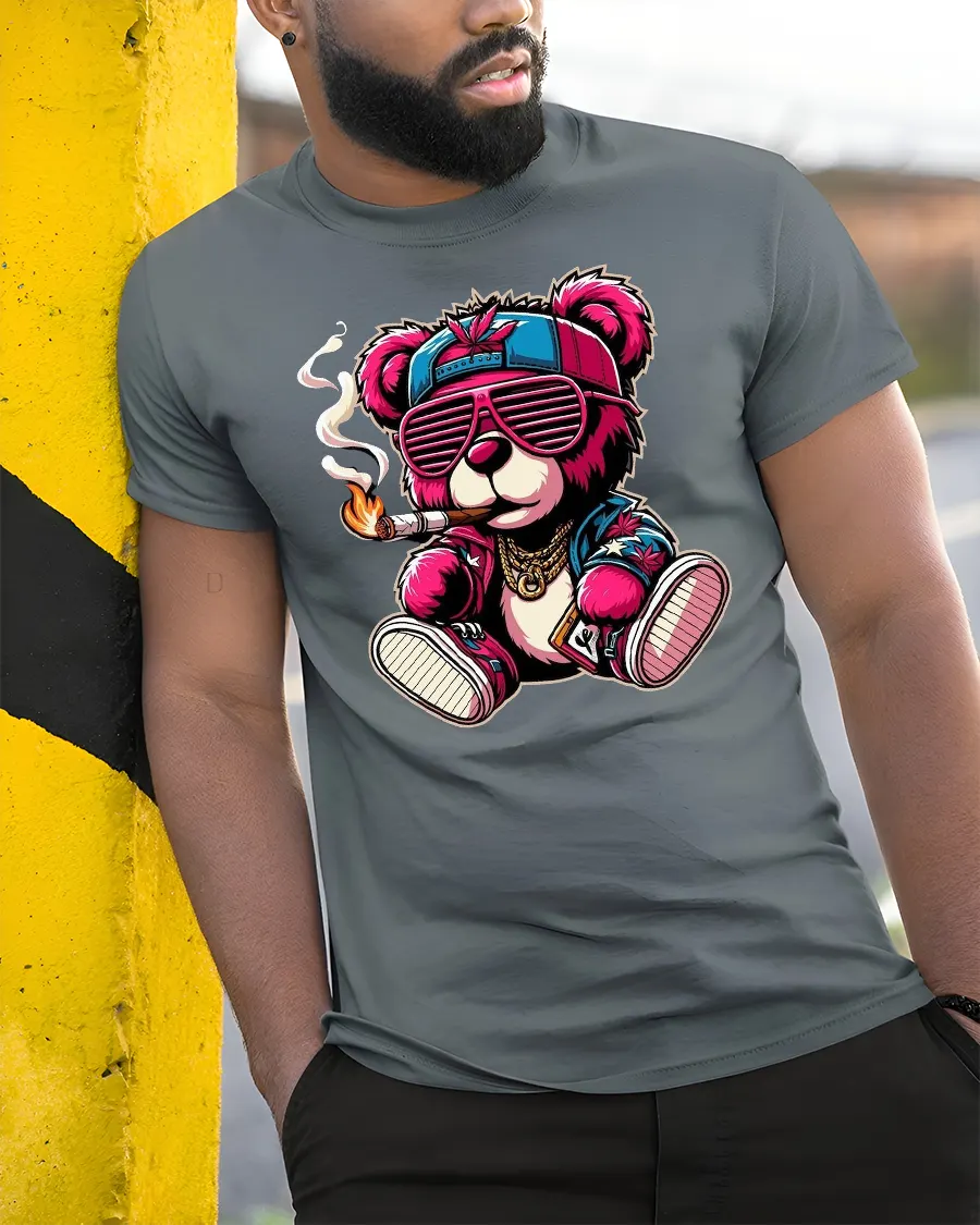 Turn up your style game with the Cool Smoking Bear Hip Hop Streetwear Graphic T-Shirt.