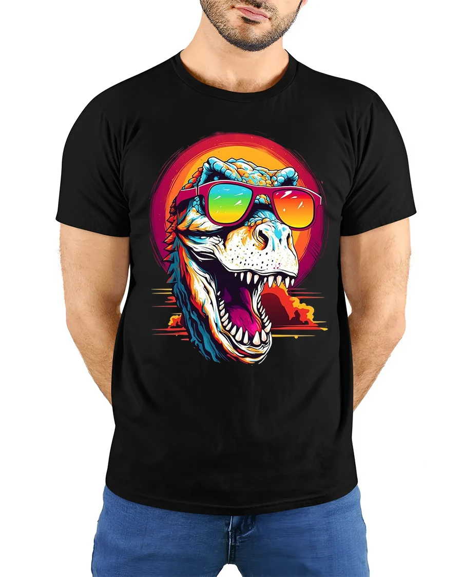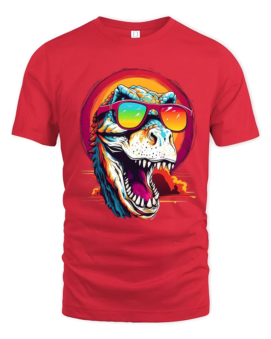 The Cool Sunglasses T Rex Roar Graphic Tee With Retro Sunset Vibes brings bold energy and playful attitude into one striking design.