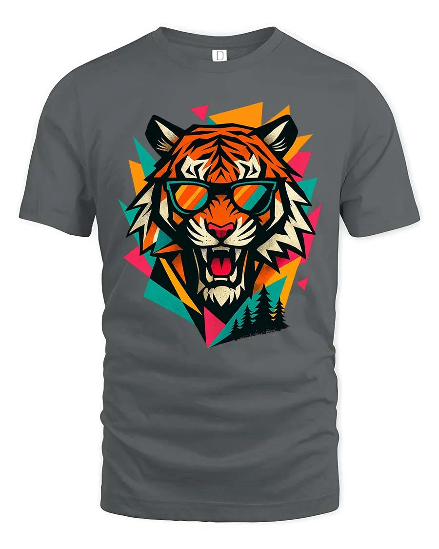 Stand out with this cool tiger t-shirt, featuring a bold geometric design and stylish sunglasses that bring a modern retro vibe.