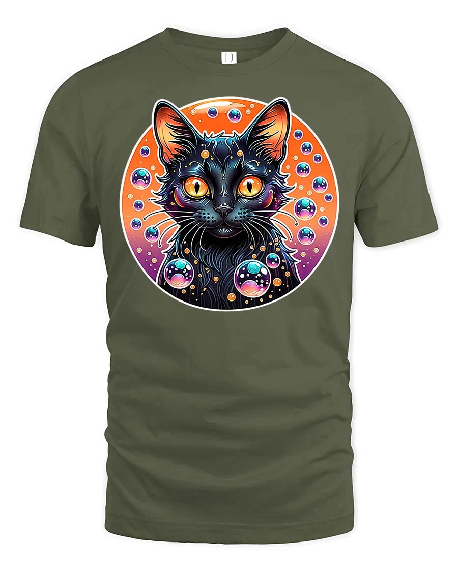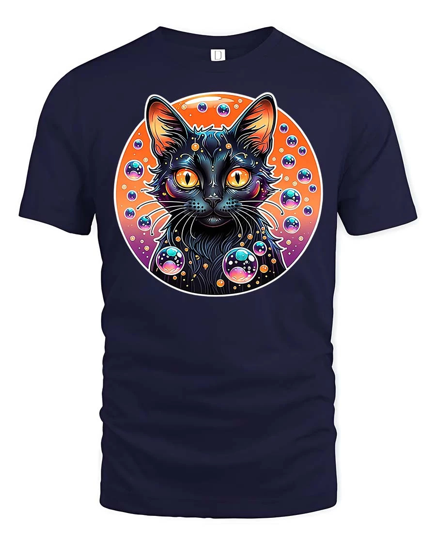 Cosmic Neon Black Cat Bubble Galaxy Graphic Art Tshirt appeals to individuals who enjoy unique graphics and expressive fashion.