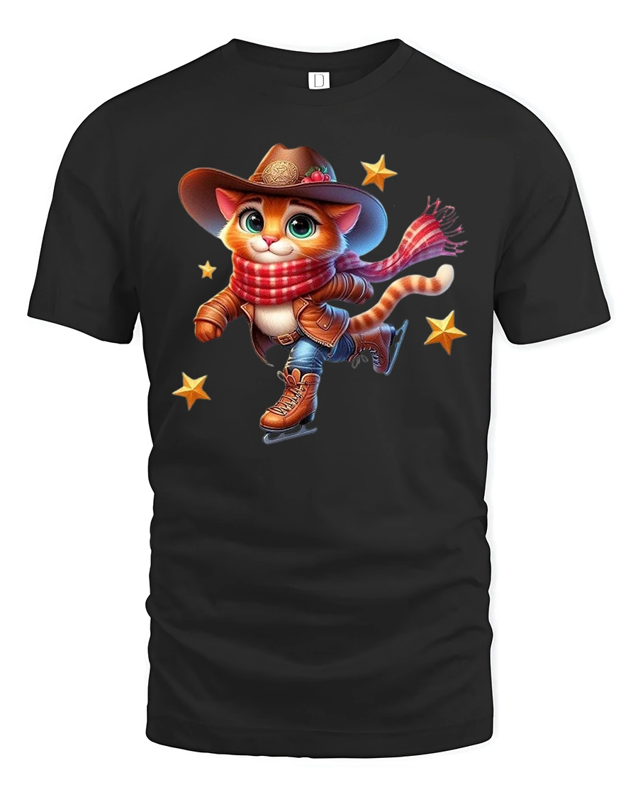 Cowboy Cat Ice Skating Funny Western Graphic Tee is the perfect blend of cuteness, humor, and unique style. Featuring an adorable cat dressed as a cowboy with a hat, scarf, and boots while ice skating, this playful design will instantly brighten your outfit. Surrounded by golden stars, this tee captures a fun mix of western charm and winter vibes.