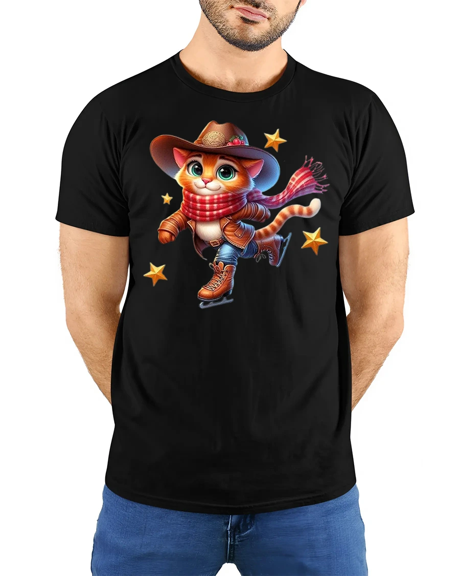 The Cowboy Cat Ice Skating Funny Western Graphic Tee also makes a thoughtful gift for friends and family who love quirky and adorable fashion. Wear it to show off your playful personality, your love for cats, or your western spirit with a touch of humor. This tee is a must-have for anyone who enjoys fun, standout graphic t-shirts.