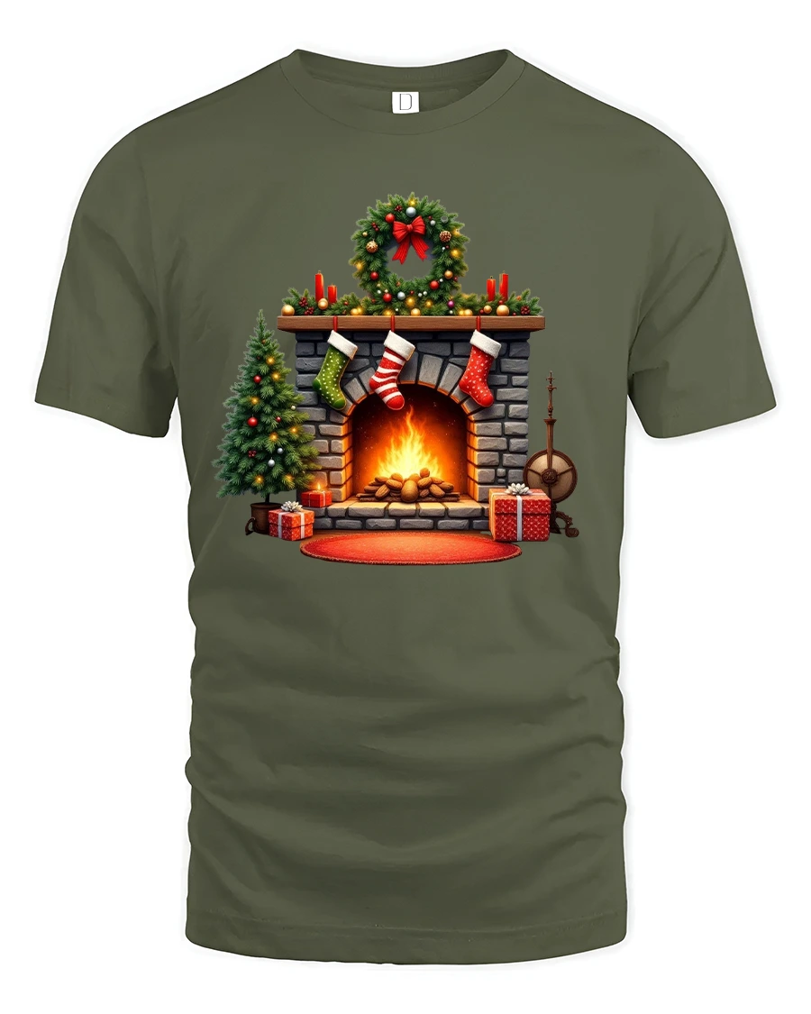 Bring warmth and festive charm into your holiday wardrobe with this Christmas fireplace t shirt designed to capture the heart of the season.