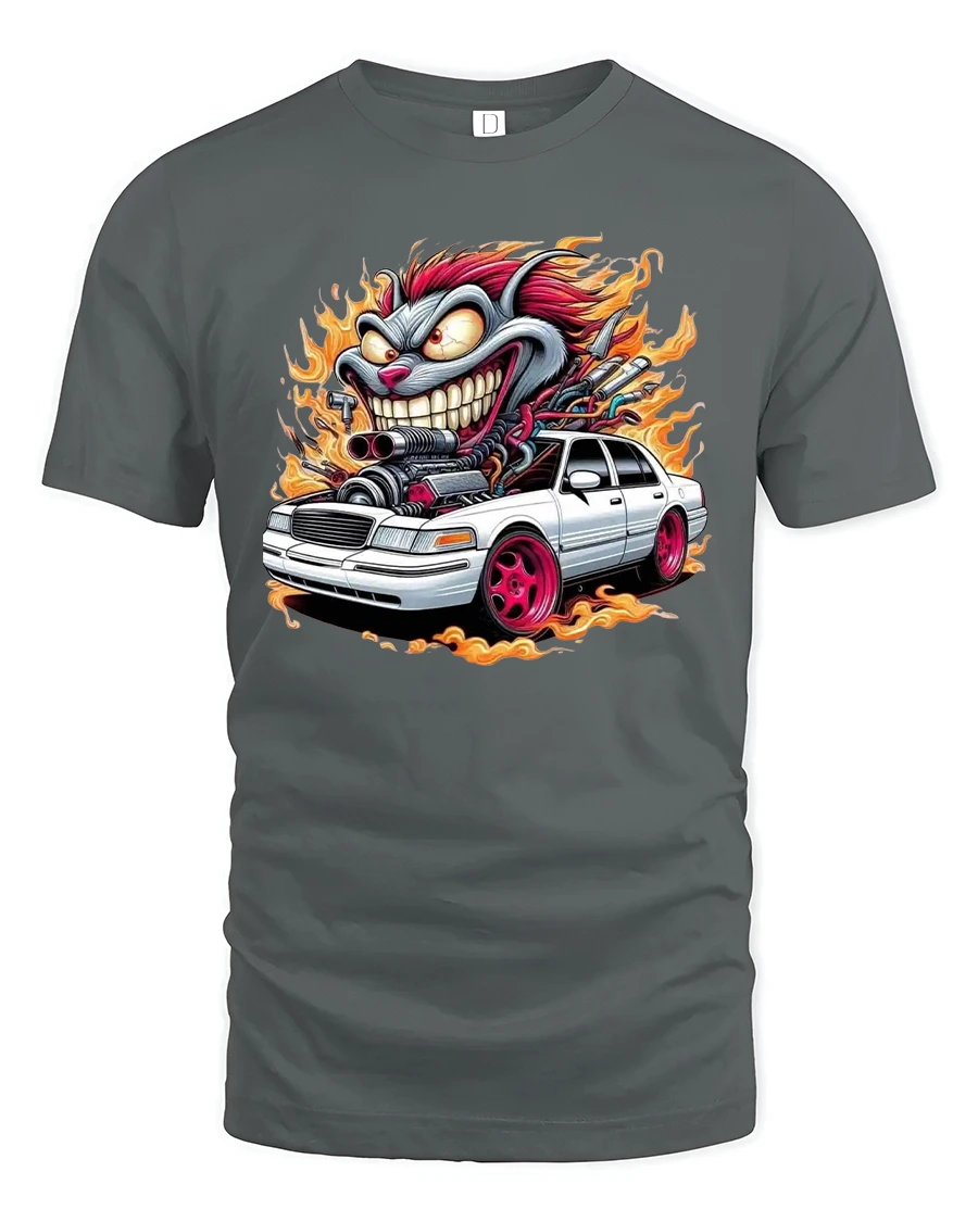 Add some fiery attitude to your wardrobe with the Crazy Hot Rod Creature Tee Wild Muscle Car Flames Tshirt. Great for car meets, races, casual outings, or gifting to gearheads, this tee brings personality and adrenaline to any outfit. Wear it loud, wear it proud, and show off your love of wild hot rod culture.