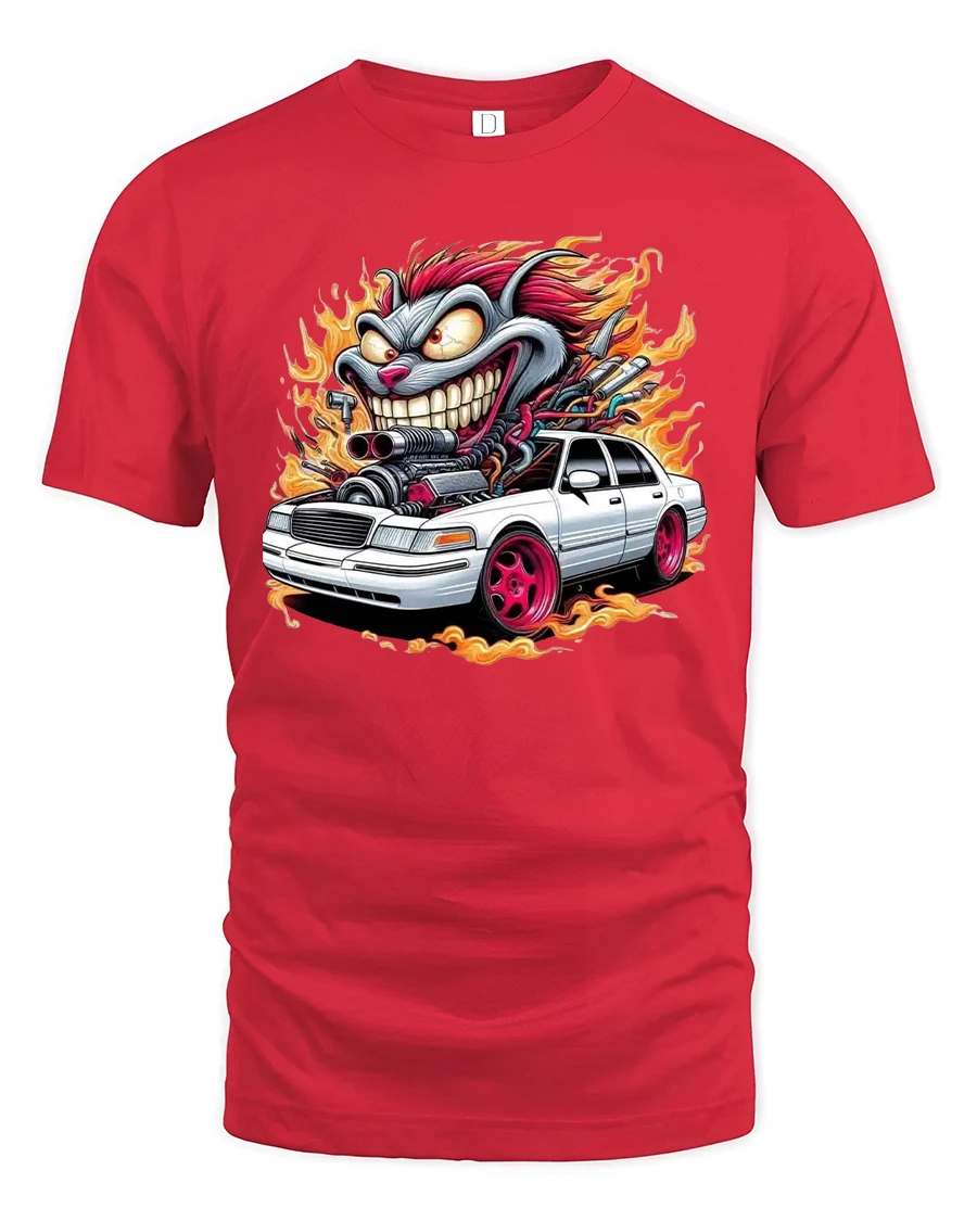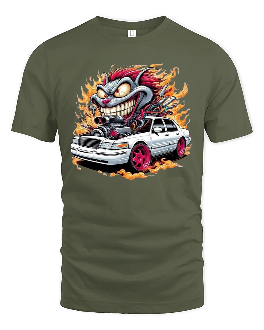 Crazy Hot Rod Creature Tee Wild Muscle Car Flames Tshirt delivers bold energy and high octane attitude with a wild cartoon creature tearing down the road in a flaming hot rod. The explosive design features bright colors, exaggerated motion, and a wickedly grinning driver, making it an instant favorite for fans of custom cars, street racing culture, and crazy cartoon art. Its dynamic style captures the thrill of speed and the fun of over the top hot rod illustrations.