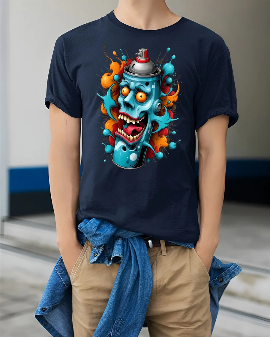 This Crazy Spray Can Skull Graphic T-Shirt delivers wild, high-energy street style with its explosive graffiti-inspired design. Featuring a chaotic spray can character with skull features, bulging eyes, and splashes of fiery orange and electric blue, this artwork captures the raw creativity of urban culture. It’s perfect for anyone who loves bold, edgy graphics that stand out instantly.