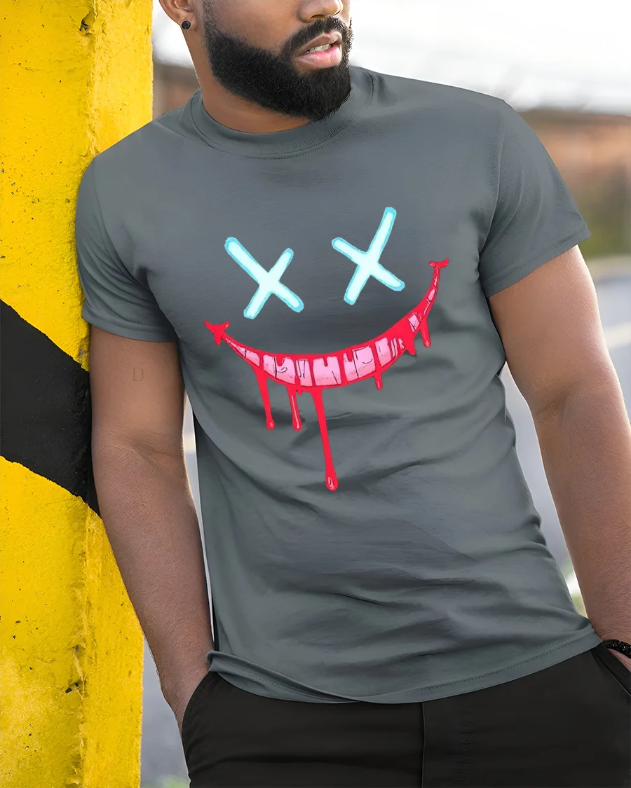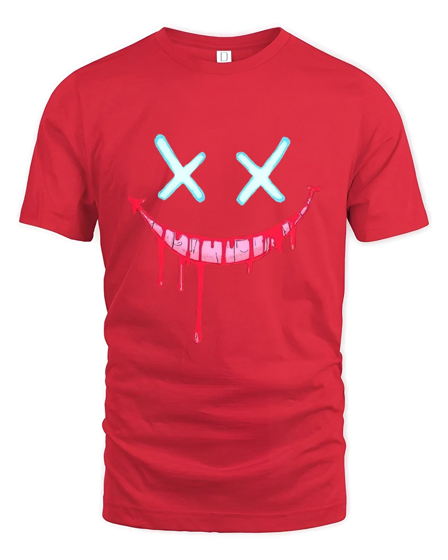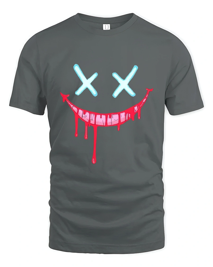 The Creepy Dripping Smile Face Dark Humor Graphic Tshirt turns dark expression into wearable art.