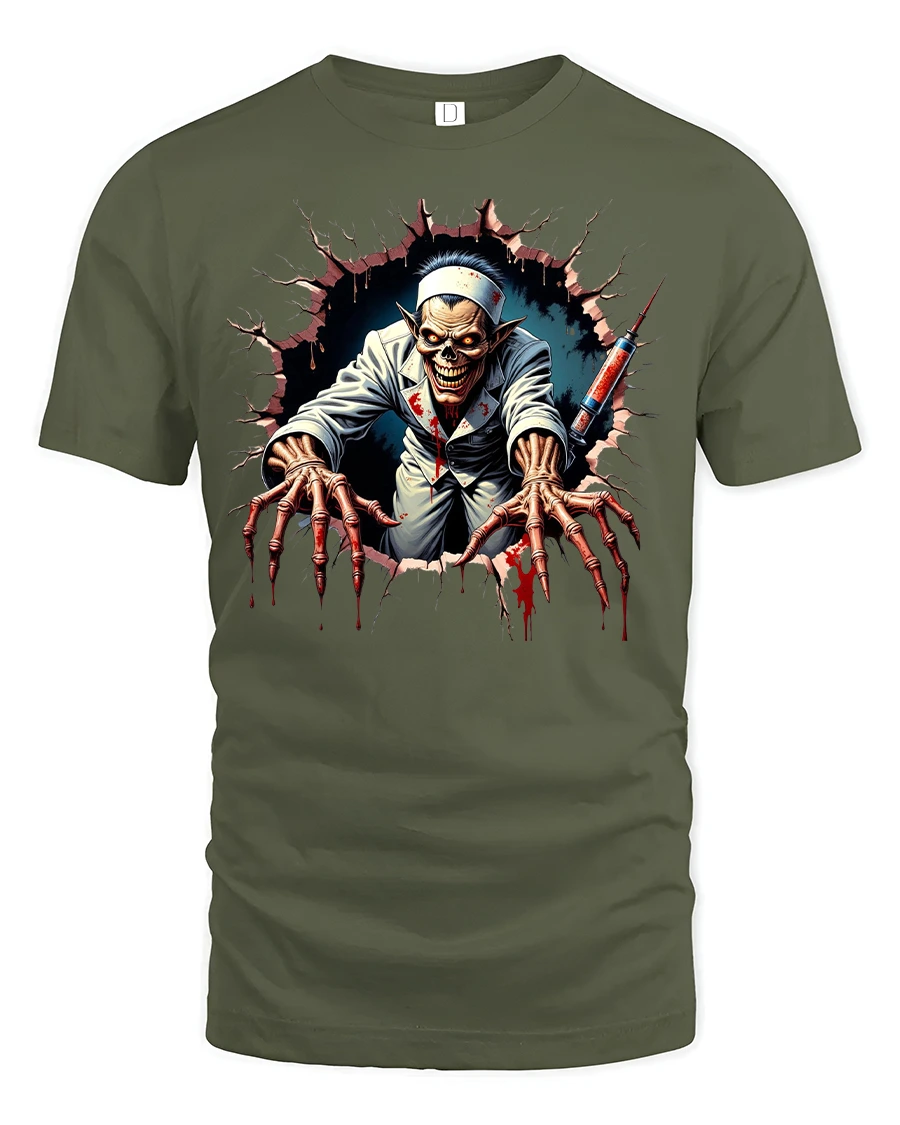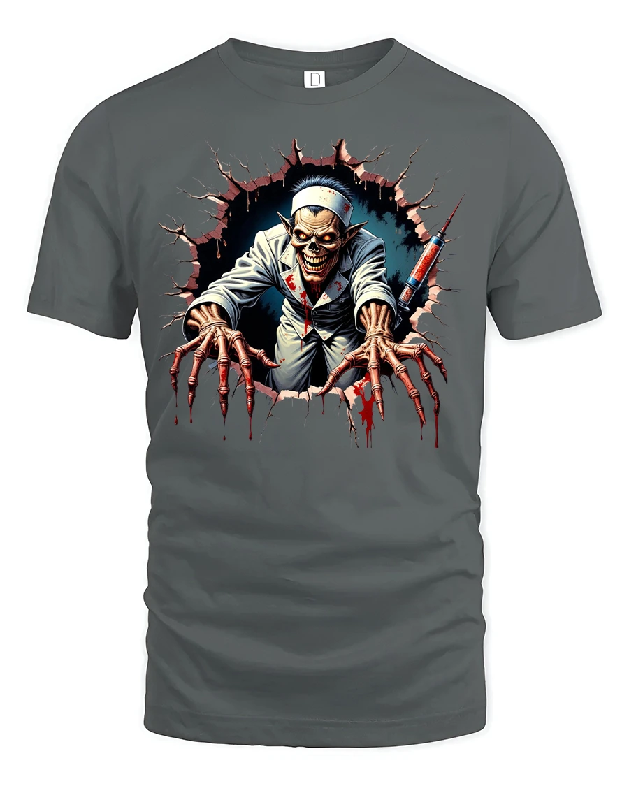 This zombie nurse graphic tee also makes a unique and unforgettable gift for horror lovers, gothic fashion fans, or anyone who appreciates edgy art on apparel. Pair it with jeans, a leather jacket, or dark accessories to complete your horror-inspired look. Perfect for festivals, cosplay, or casual wear, this tee is a must-have for your spooky collection.