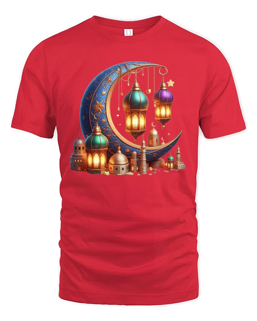Experience timeless beauty and cultural elegance with this crescent moon lantern t shirt featuring a stunning night scene filled with glowing lanterns and intricate architectural details.