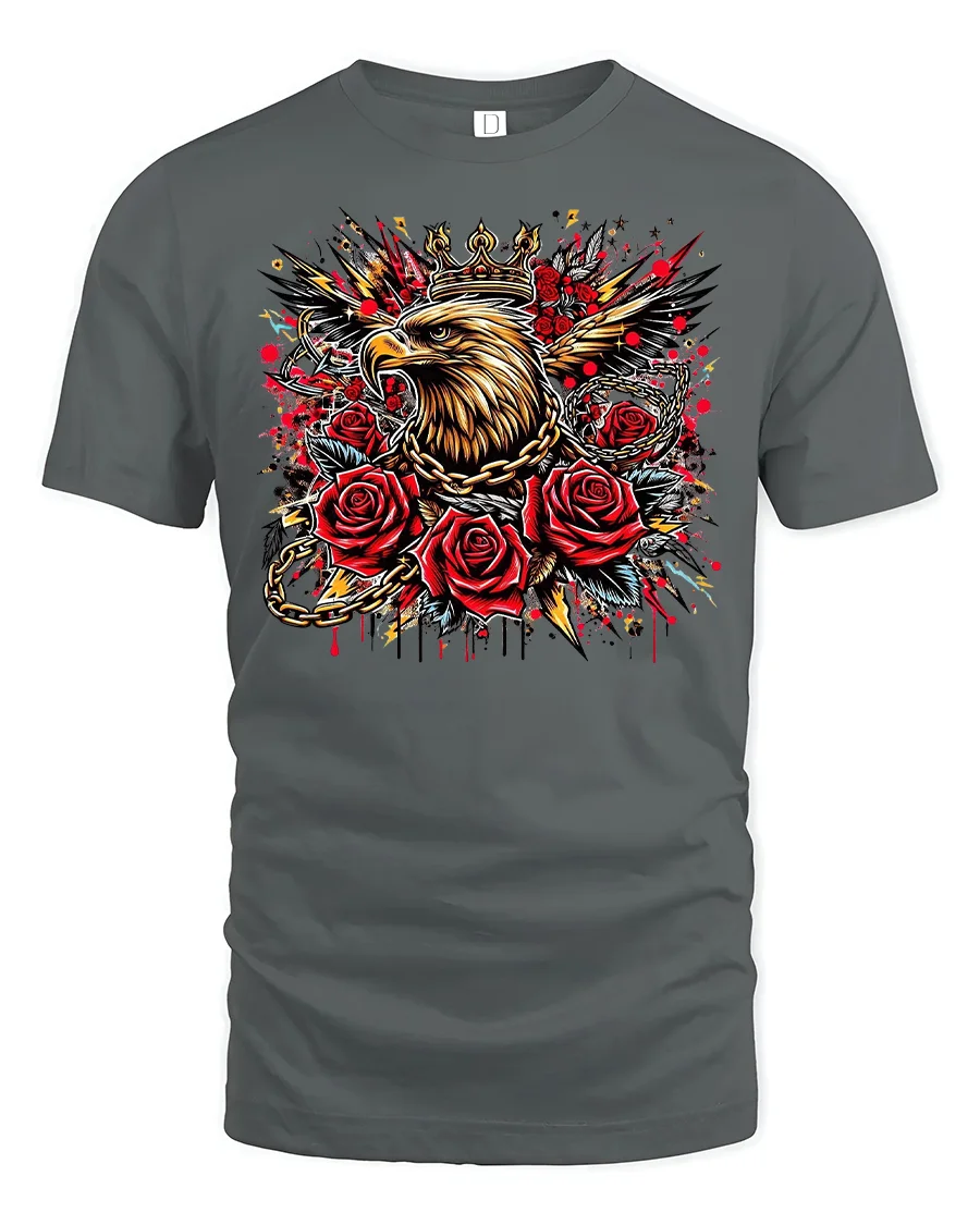 This crowned eagle with roses graphic t-shirt for men is made with soft, breathable fabric that ensures all-day comfort. The premium print quality keeps the artwork vivid and sharp even after repeated washes, making it a long-lasting favorite. Perfect for casual outings, concerts, festivals, or everyday wear, this tee adds both power and elegance to your wardrobe.