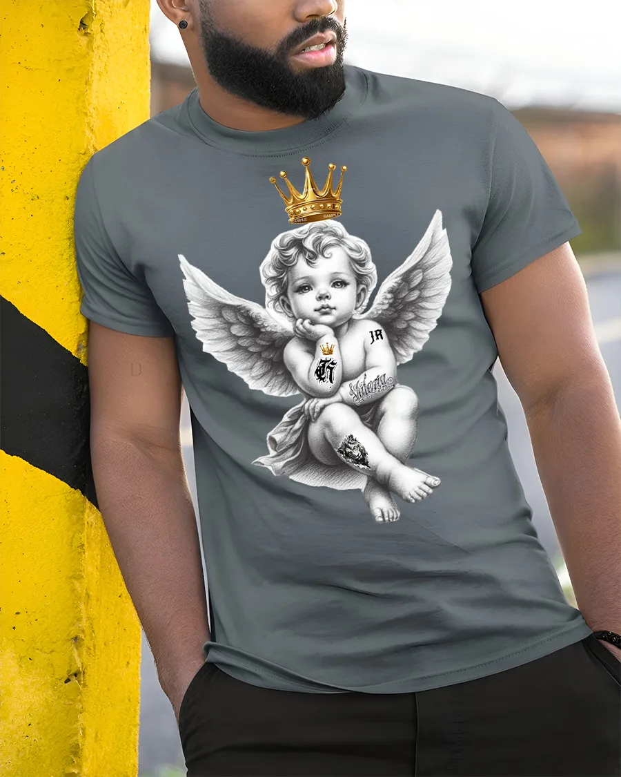 Crowned Rebel Angel Baby Art Tee Graphic Streetwear is designed to stand out with a bold mix of innocence and rebellion.