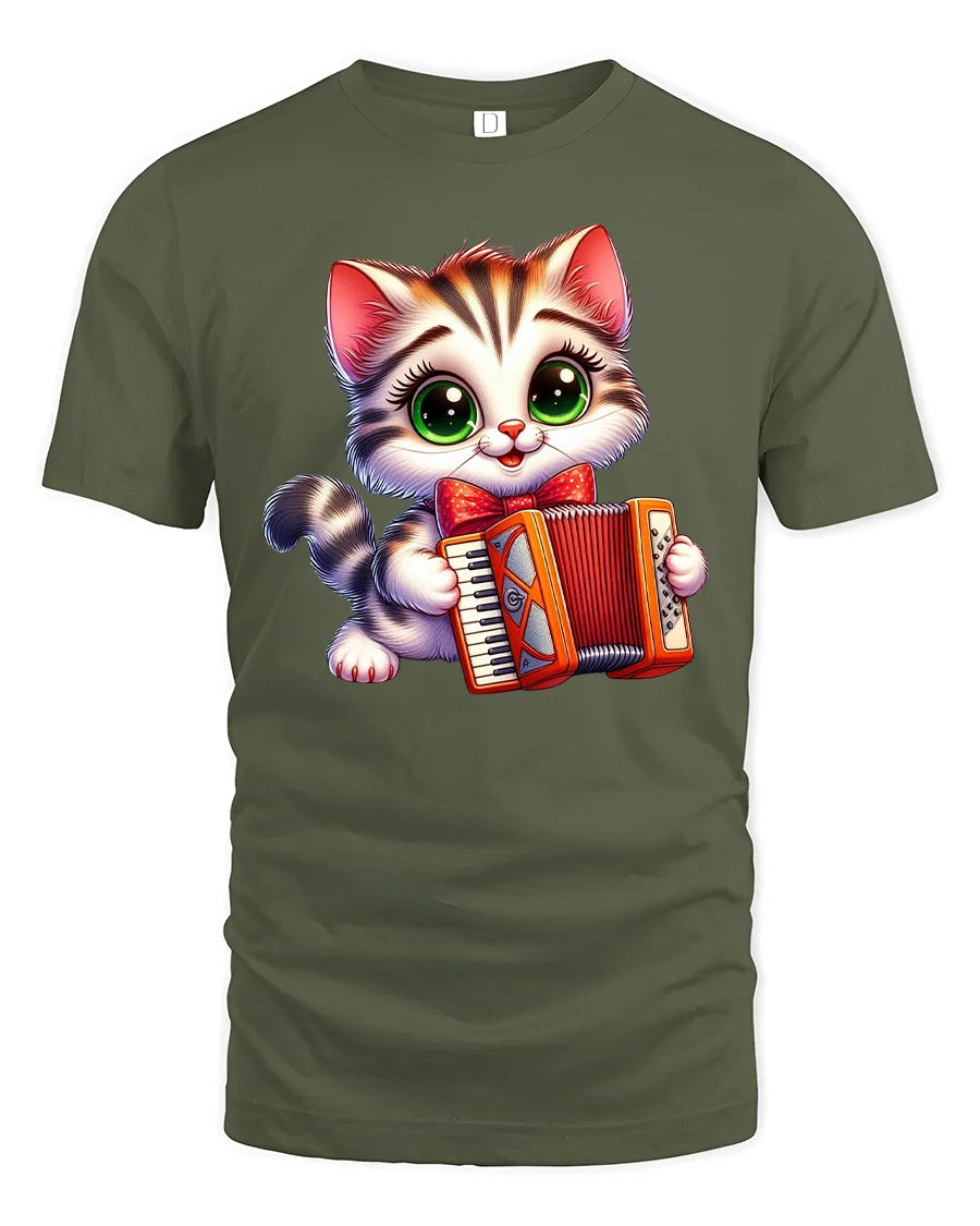 Cute Accordion Cat Music Lover Cartoon Graphic Tee is the perfect blend of charm and humor for anyone who adores both cats and music. Featuring a big-eyed kitty joyfully playing an accordion, this tee brings smiles everywhere you go. The vibrant details and playful design make it a standout choice for casual wear or as a fun gift.
