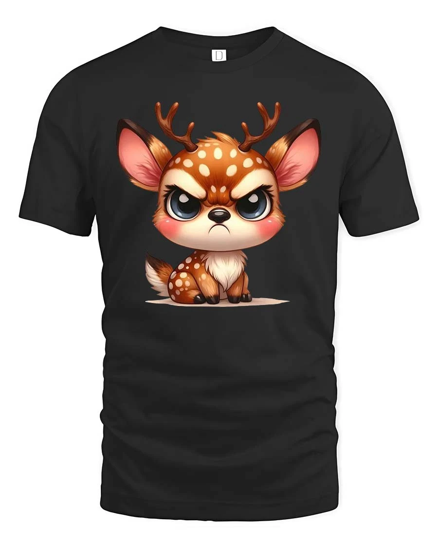 This angry deer t-shirt is a perfect gift for animal lovers, fans of cute designs, or anyone who enjoys fun and quirky fashion. Ideal for birthdays, holidays, or everyday wear, it brings a fun and expressive vibe to your wardrobe. Add this adorable yet bold graphic tee to your collection and show off your unique style.
