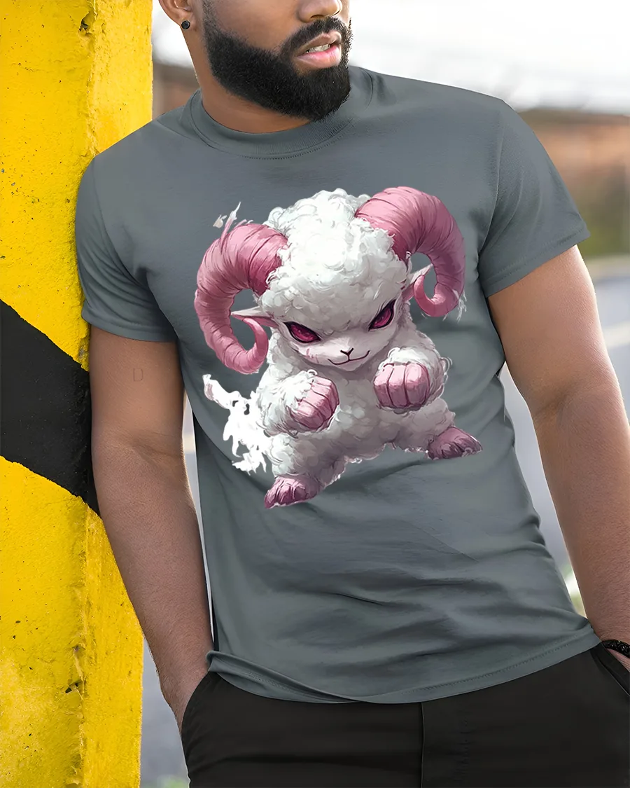 Perfect as a gift for anime fans, animal lovers, or anyone who enjoys cute-but-tough characters, this fluffy horned ram shirt brings charm, attitude, and fun to every moment.