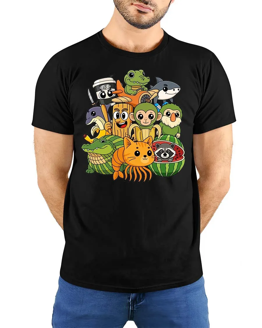 Made for comfort and everyday wear, this t-shirt offers a soft cotton feel and a relaxed fit that pairs easily with jeans, shorts, or casual outfits. The bright cartoon artwork pops against the dark background, highlighting each cute character with clear detail and playful expression. Whether you’re heading out with friends, relaxing on the weekend, or simply showing your love for animals, this graphic tee adds fun personality and cheerful style to your wardrobe.